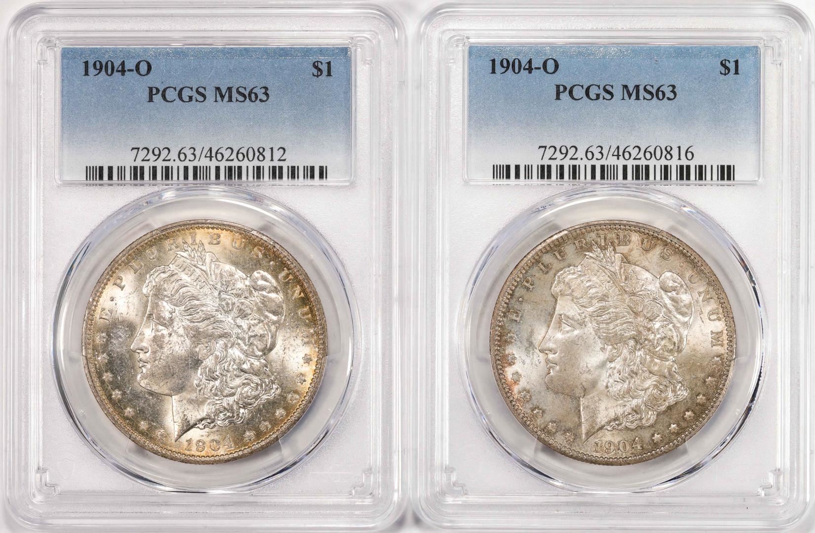 One Lot of (2) 1904-O $1 Morgan Silver Dollar Coins PCGS MS63. PCGS Graded.