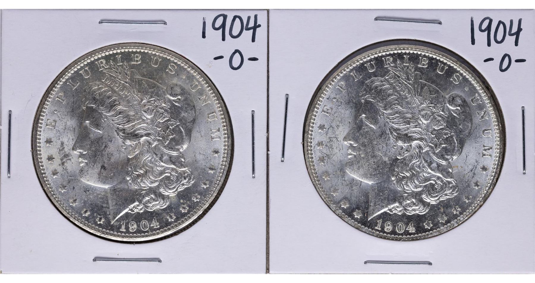 One Lot of (2) 1904-O $1 Morgan Silver Dollar Coins.