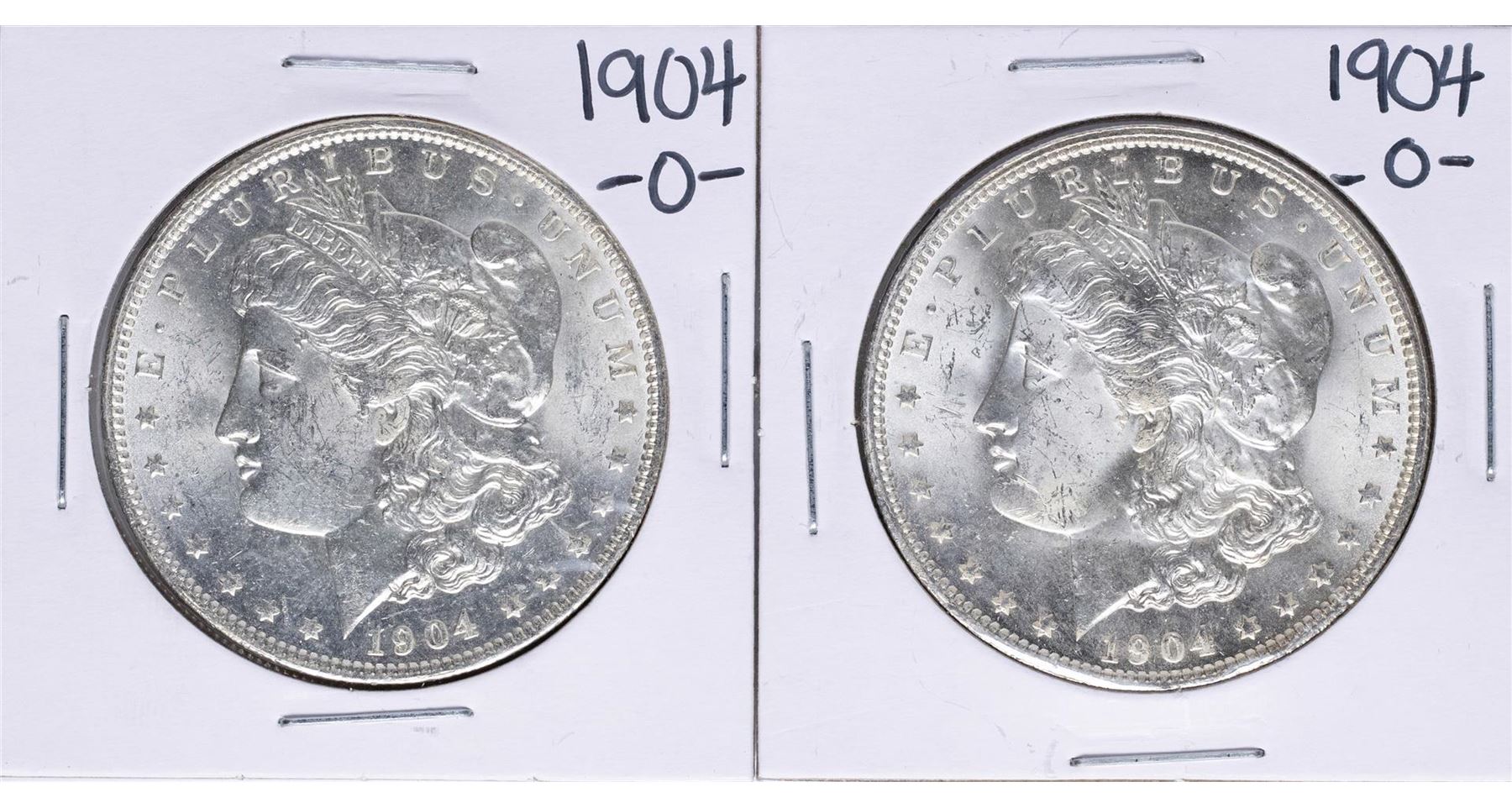 One Lot of (2) 1904-O $1 Morgan Silver Dollar Coins.