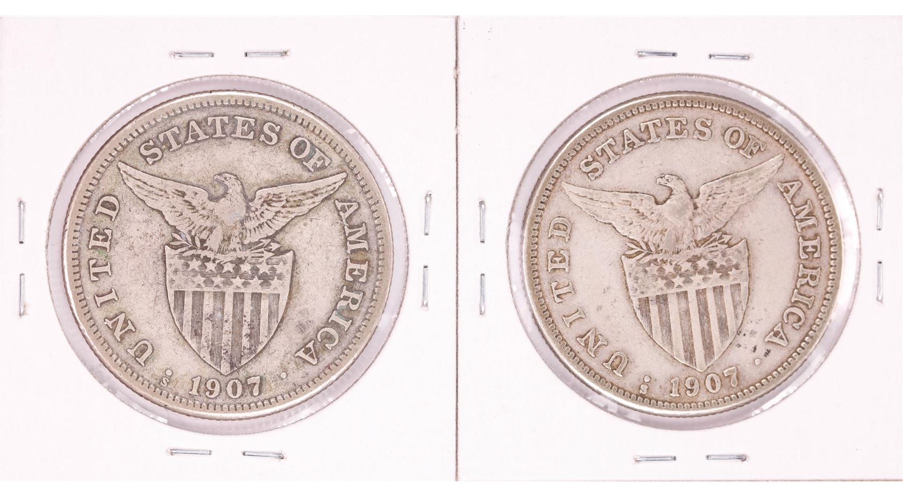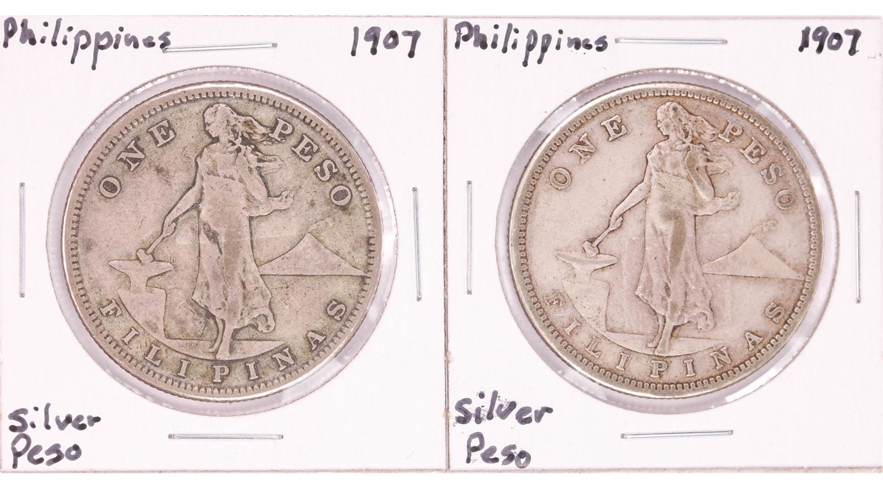 One Lot of (2) 1907 Philippines One Peso Silver Coins.