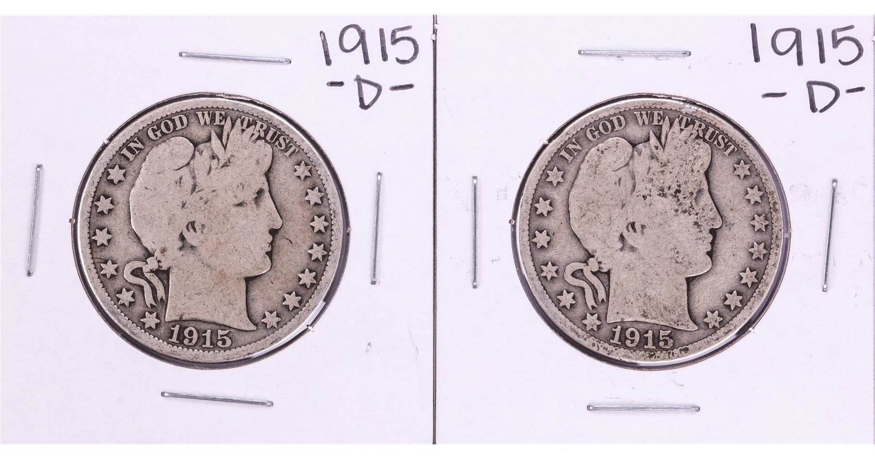 One Lot of (2) 1915-D Barber Half Dollar Coins.