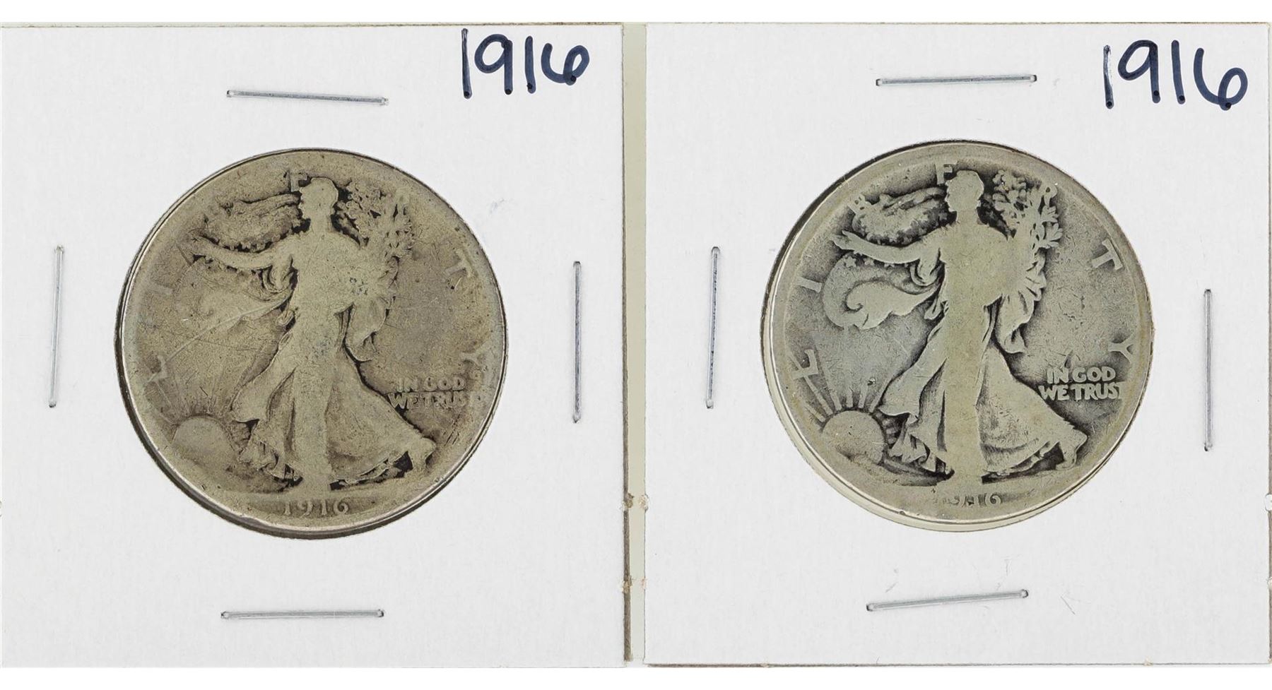 One Lot of (2) 1916 Walking Liberty Half Dollar Silver Coins.