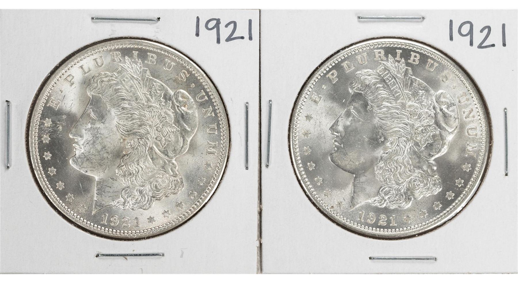 One Lot of (2) 1921 $1 Morgan Silver Dollar Coins.