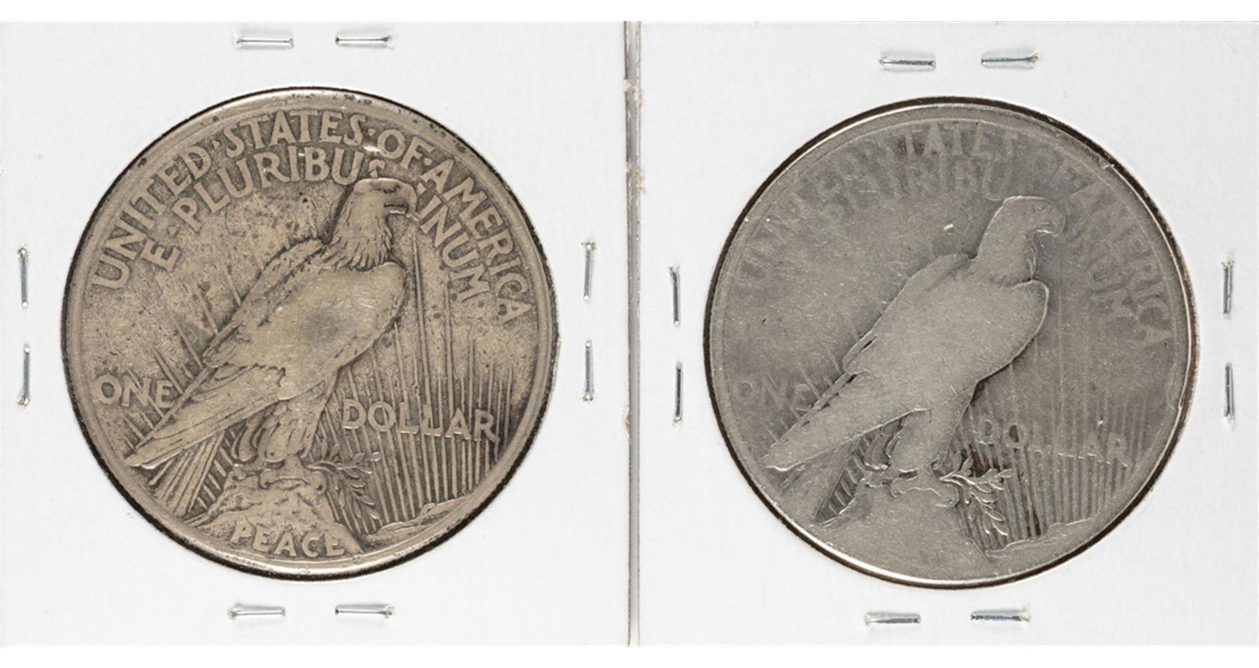 One Lot of (2) 1921 $1 Peace Silver Dollar Coins.
