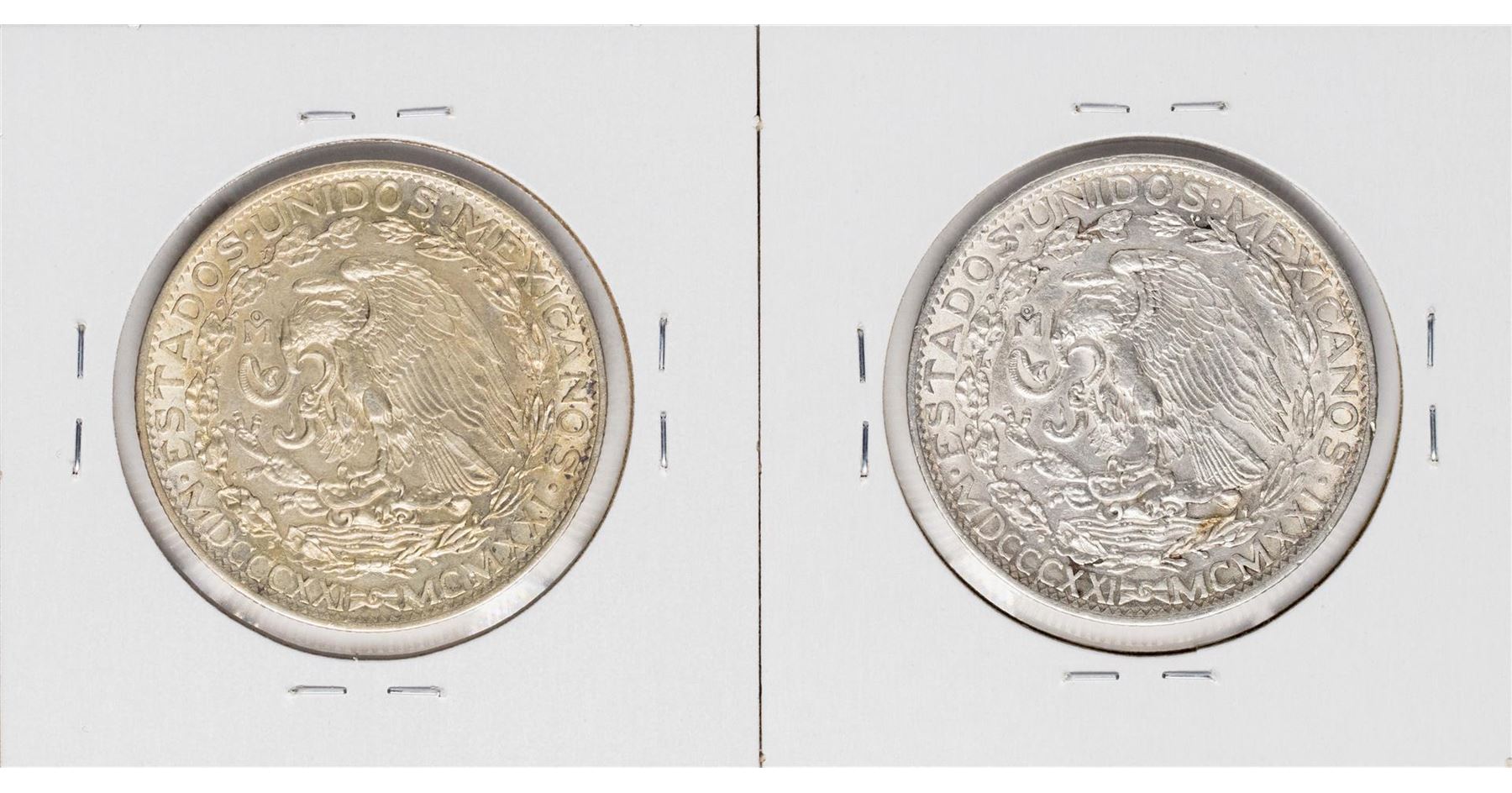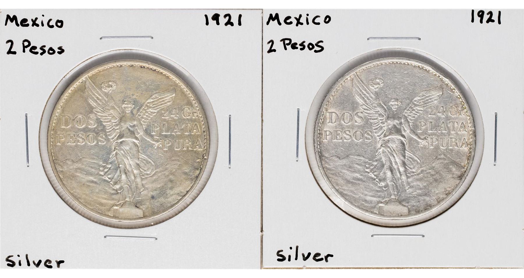 One Lot of (2) 1921 Mexico 2 Pesos Silver Coins.