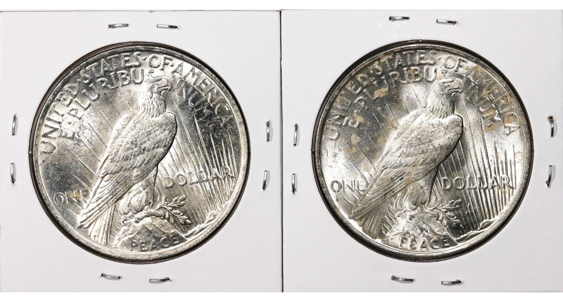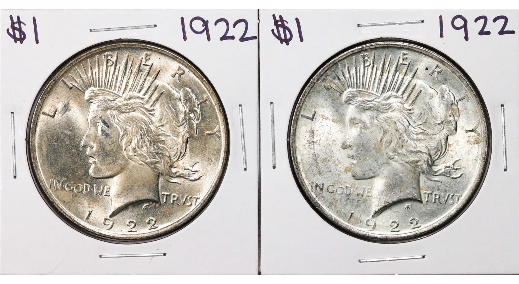 One Lot of (2) 1922 $1 Peace Silver Dollar Coins.