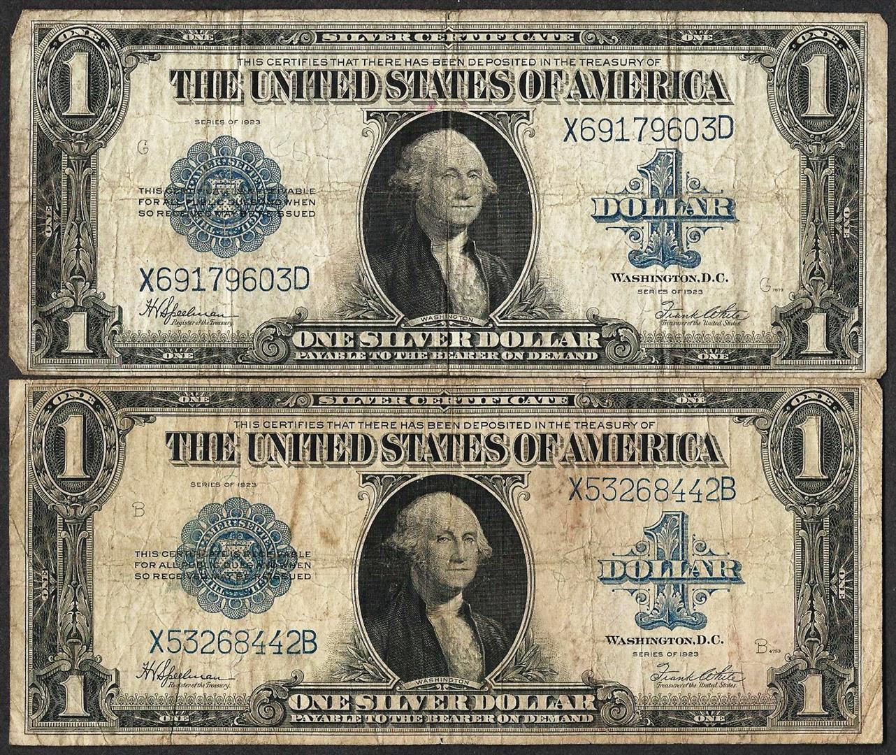 One Lot of (2) 1923 $1 Silver Certificate Notes.
