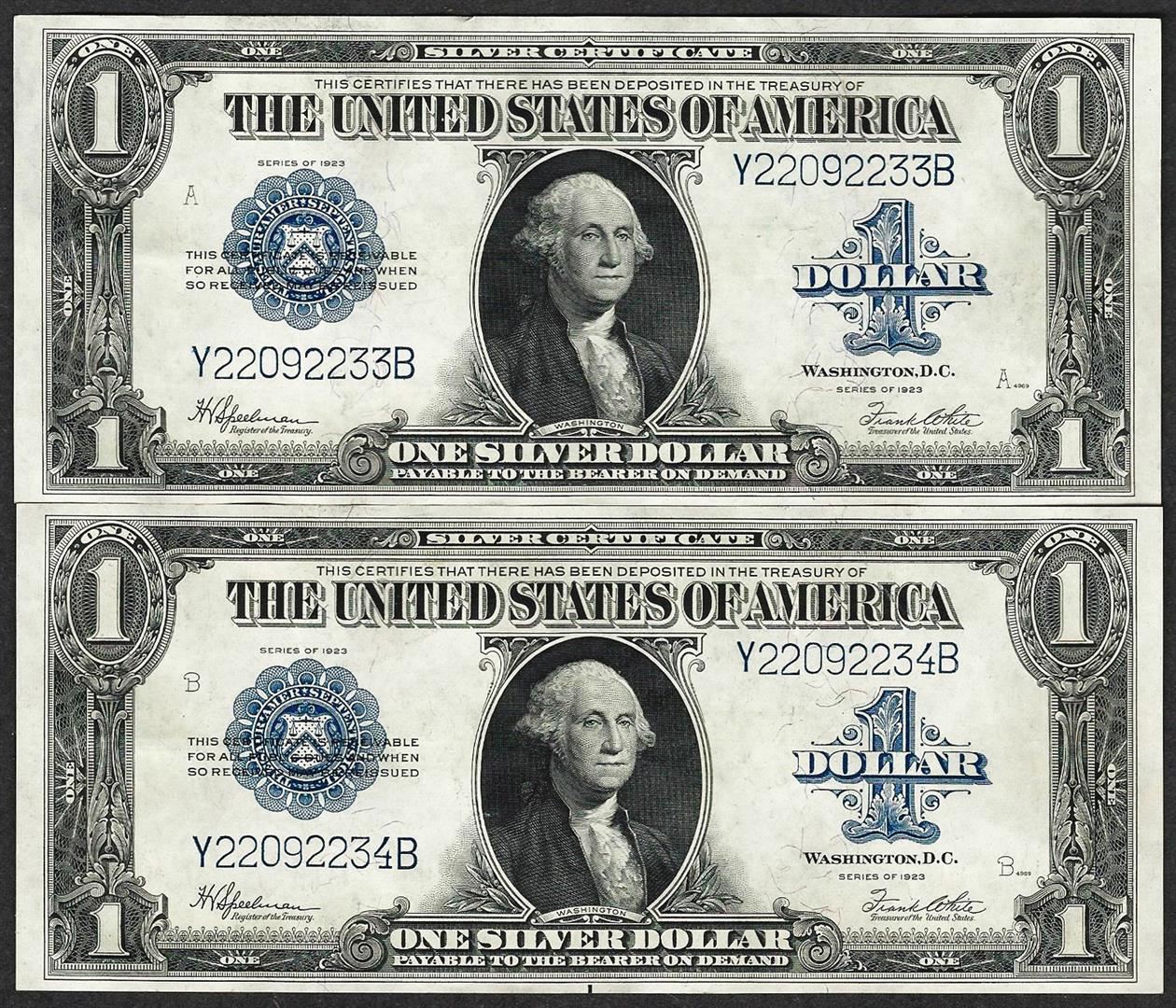 One Lot of (2) 1923 $1 Silver Certificate Notes.