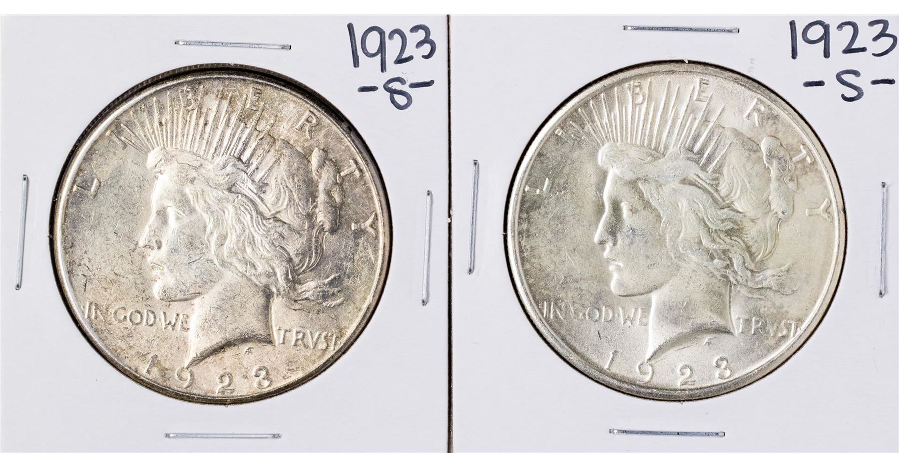 One Lot of (2) 1923-S $1 Peace Silver Dollar Coins.