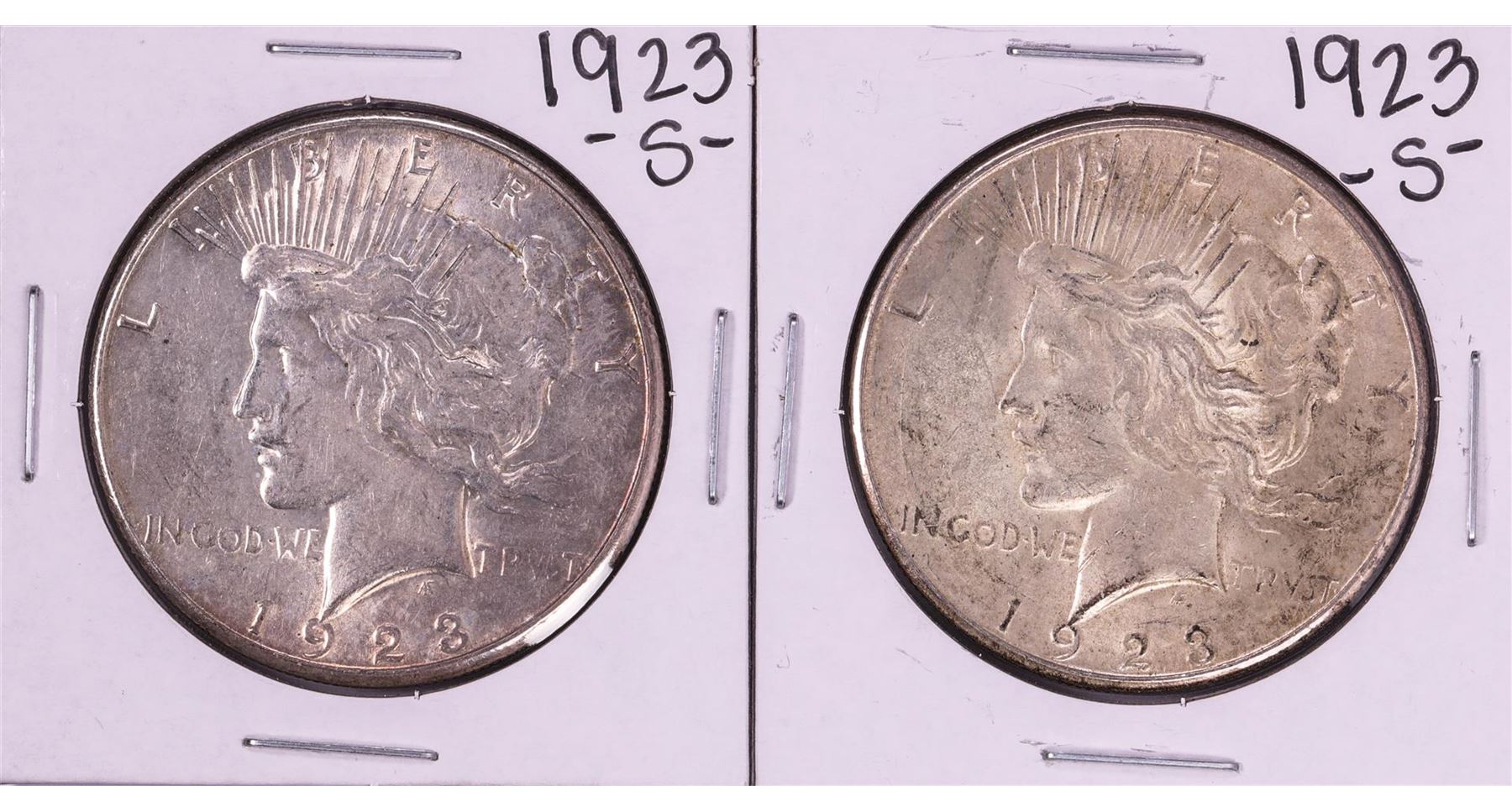 One Lot of (2) 1923-S $1 Peace Silver Dollar Coins.