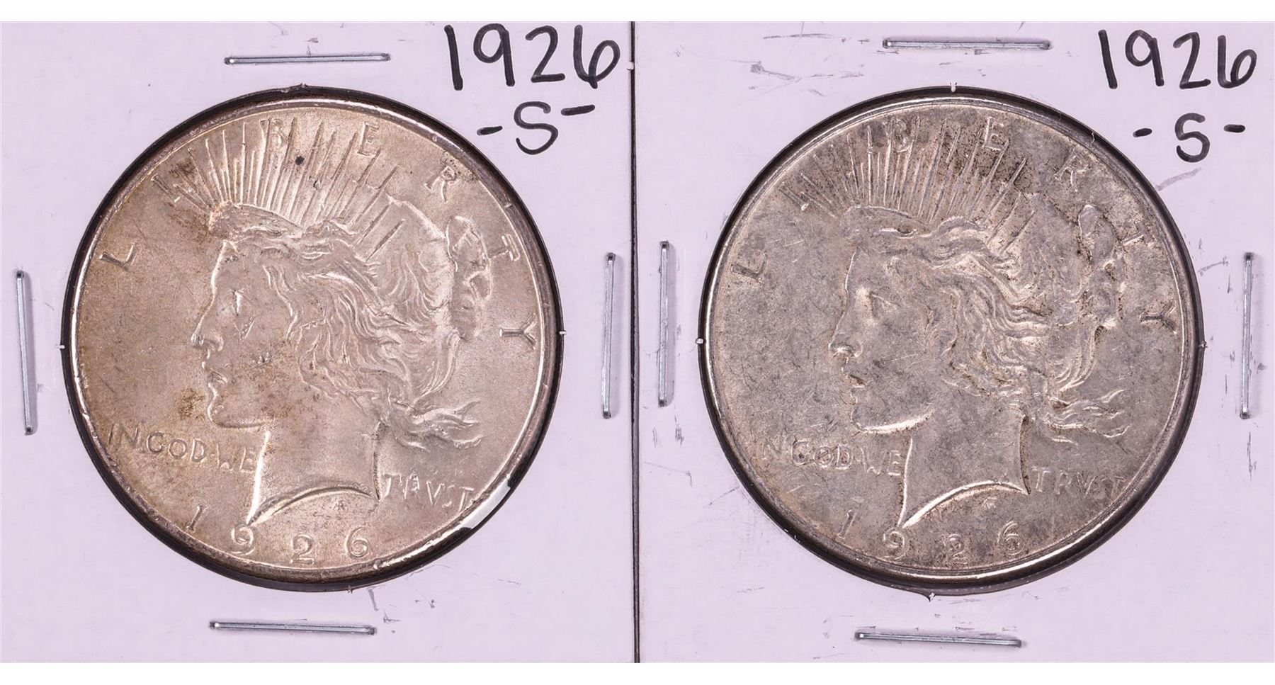 One Lot of (2) 1926-S $1 Peace Silver Dollar Coins.