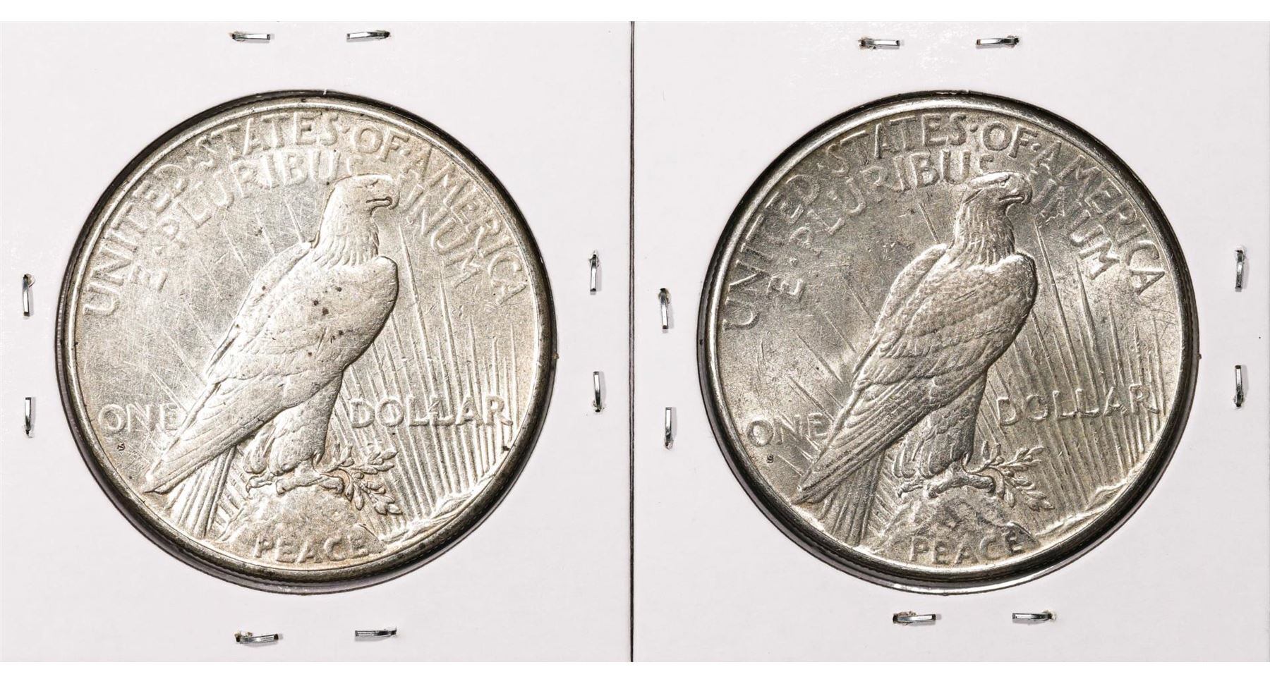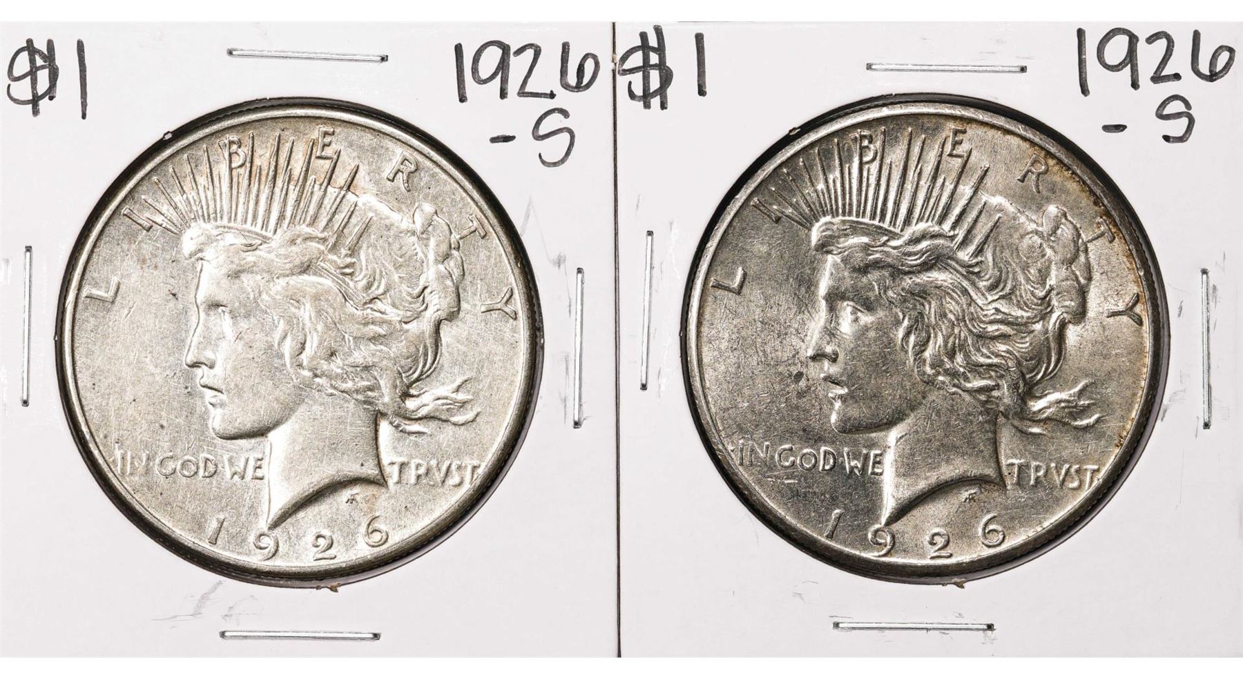 One Lot of (2) 1926-S $1 Peace Silver Dollar Coins.