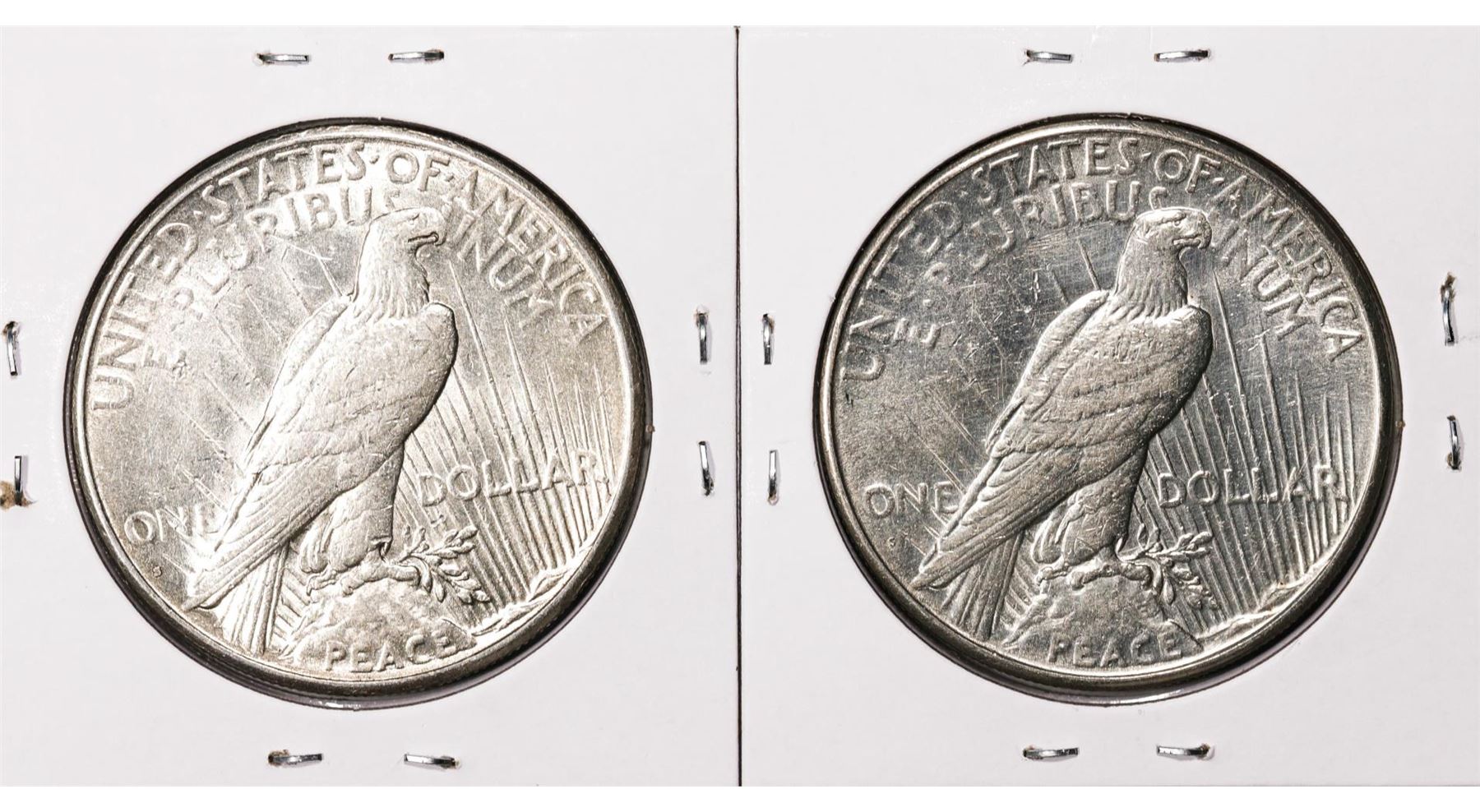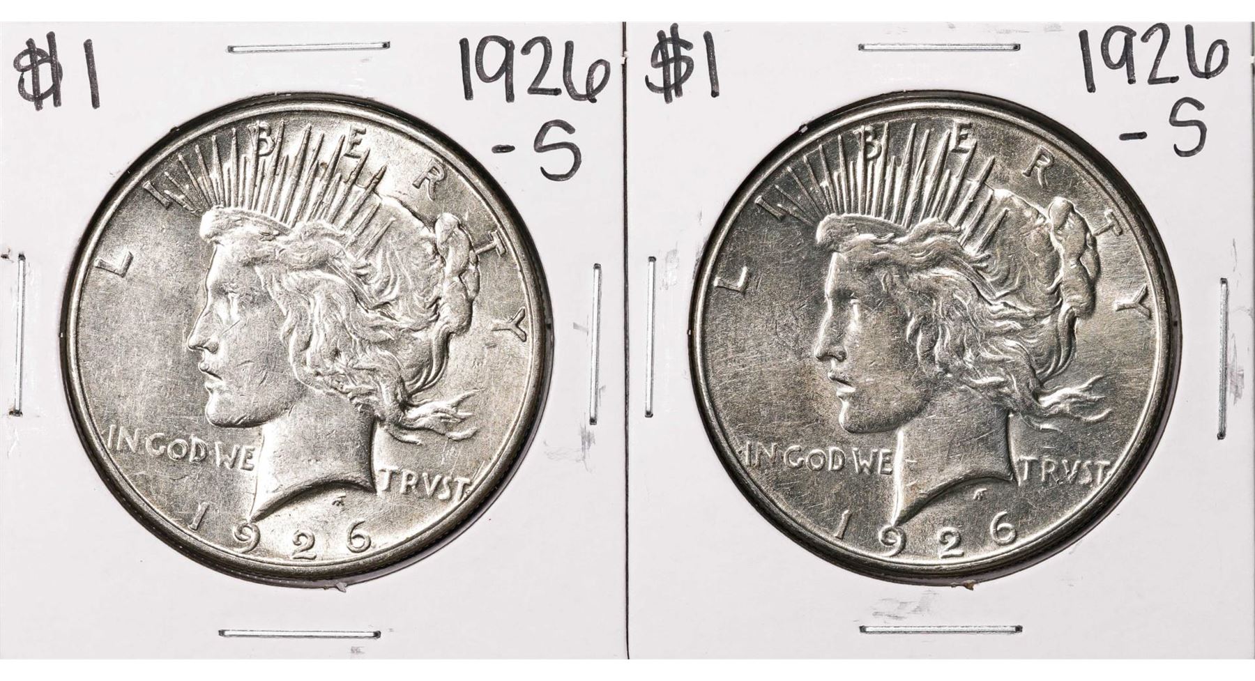 One Lot of (2) 1926-S $1 Peace Silver Dollar Coins.