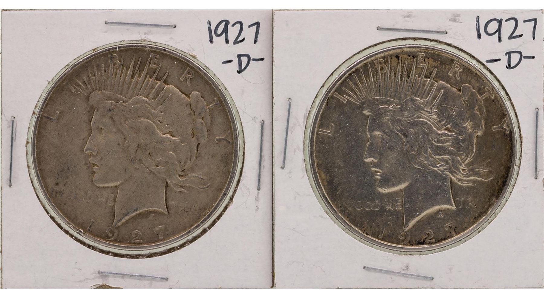 One Lot of (2) 1927-D $1 Peace Silver Dollar Coins.