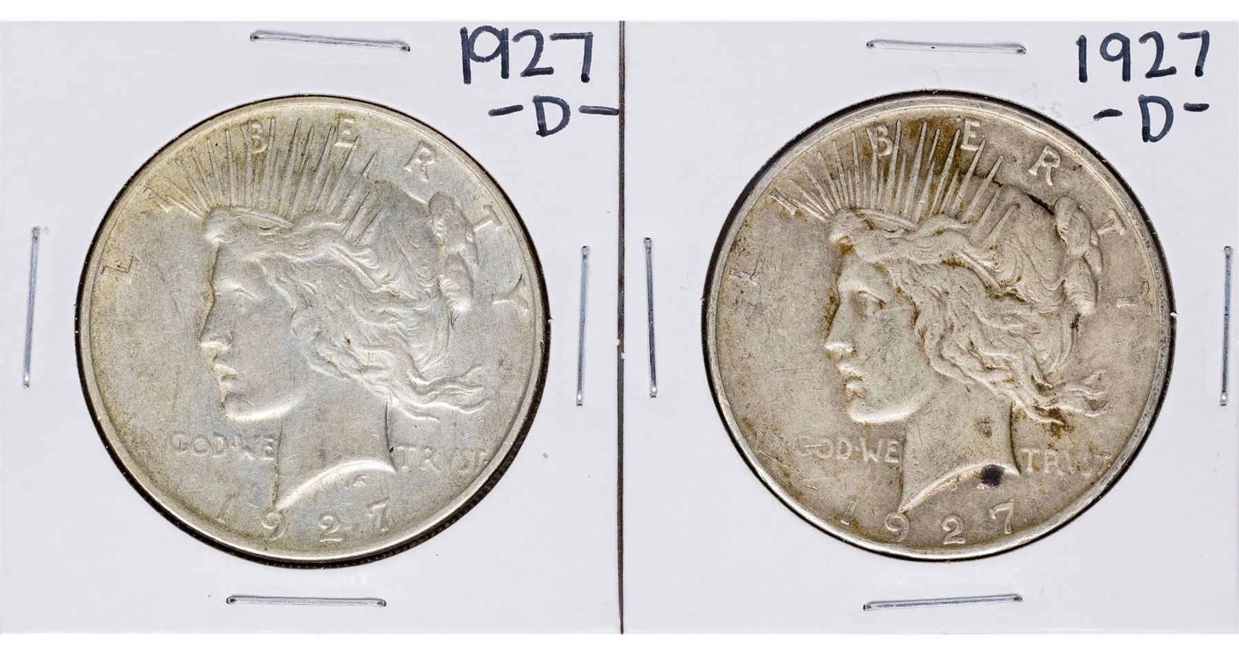 One Lot of (2) 1927-D $1 Peace Silver Dollar Coins.