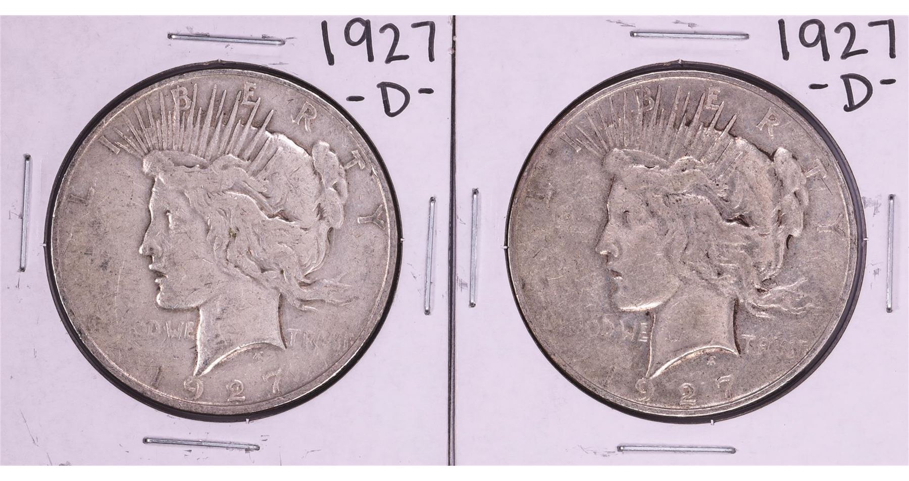 One Lot of (2) 1927-D $1 Peace Silver Dollar Coins.