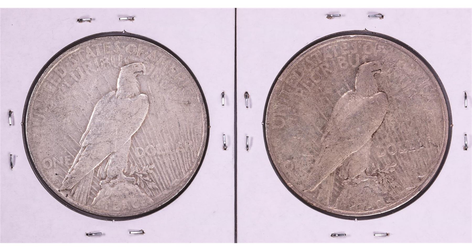 One Lot of (2) 1927-D $1 Peace Silver Dollar Coins.