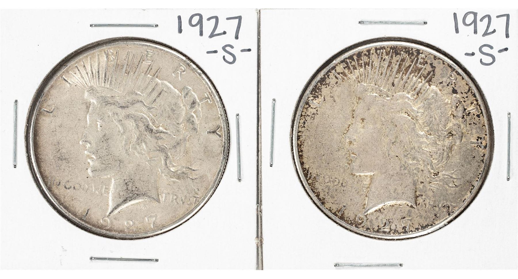 One Lot of (2) 1927-S $1 Peace Silver Dollar Coins.
