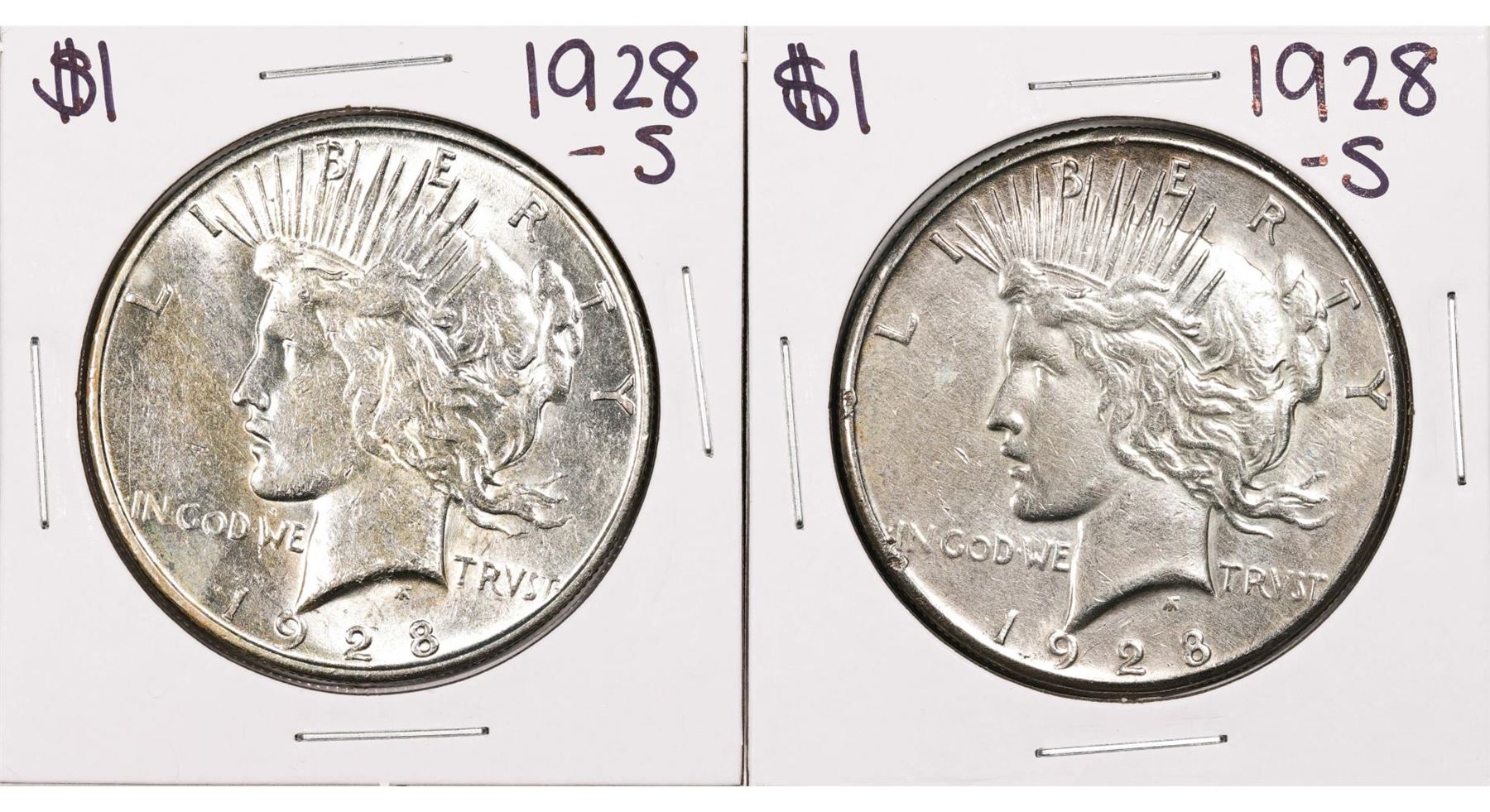 One Lot of (2) 1928-S $1 Peace Silver Dollar Coins.