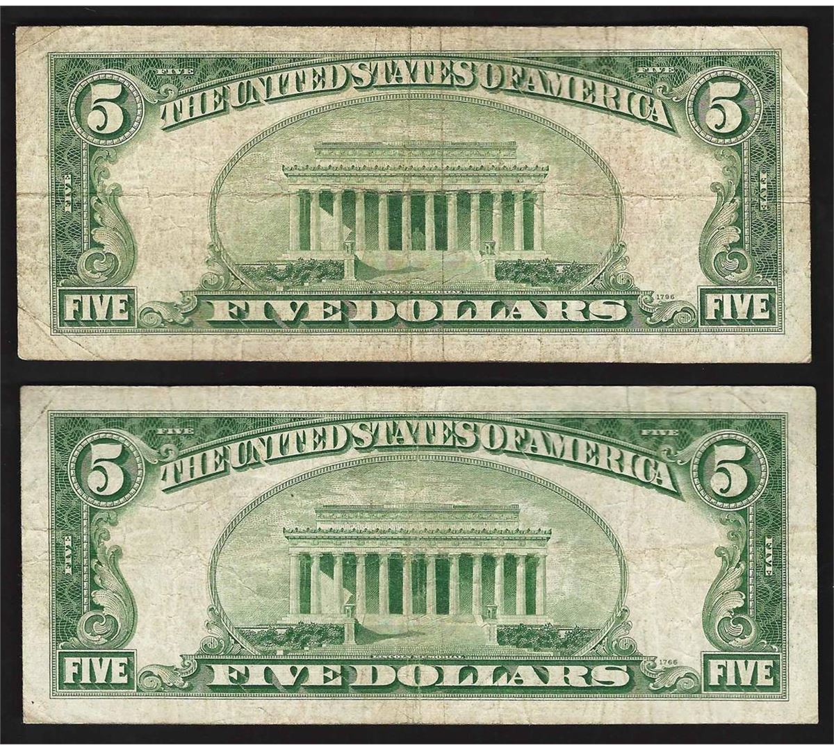 One Lot of (2) 1928E $5 Legal Tender Notes.