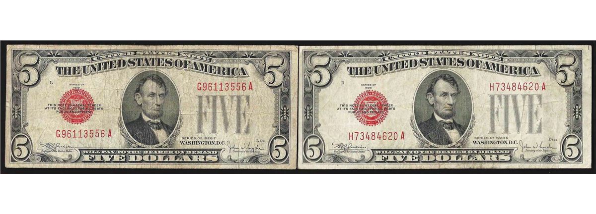 One Lot of (2) 1928E $5 Legal Tender Notes.