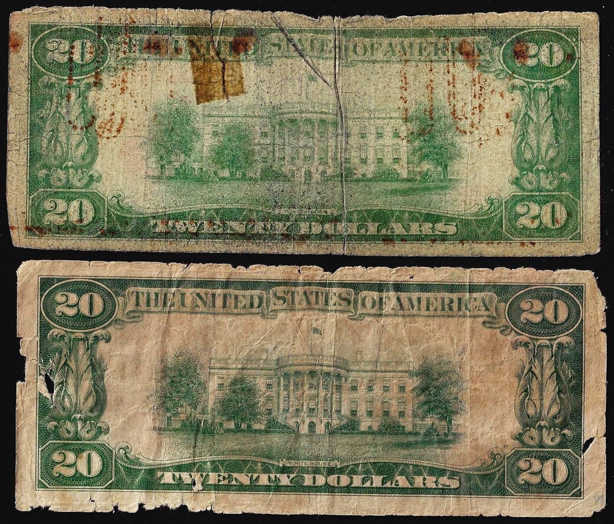 Lot of (2) 1929 $20 Dallas & Greenville, Texas CH# 8581/3623 National Currency Notes
