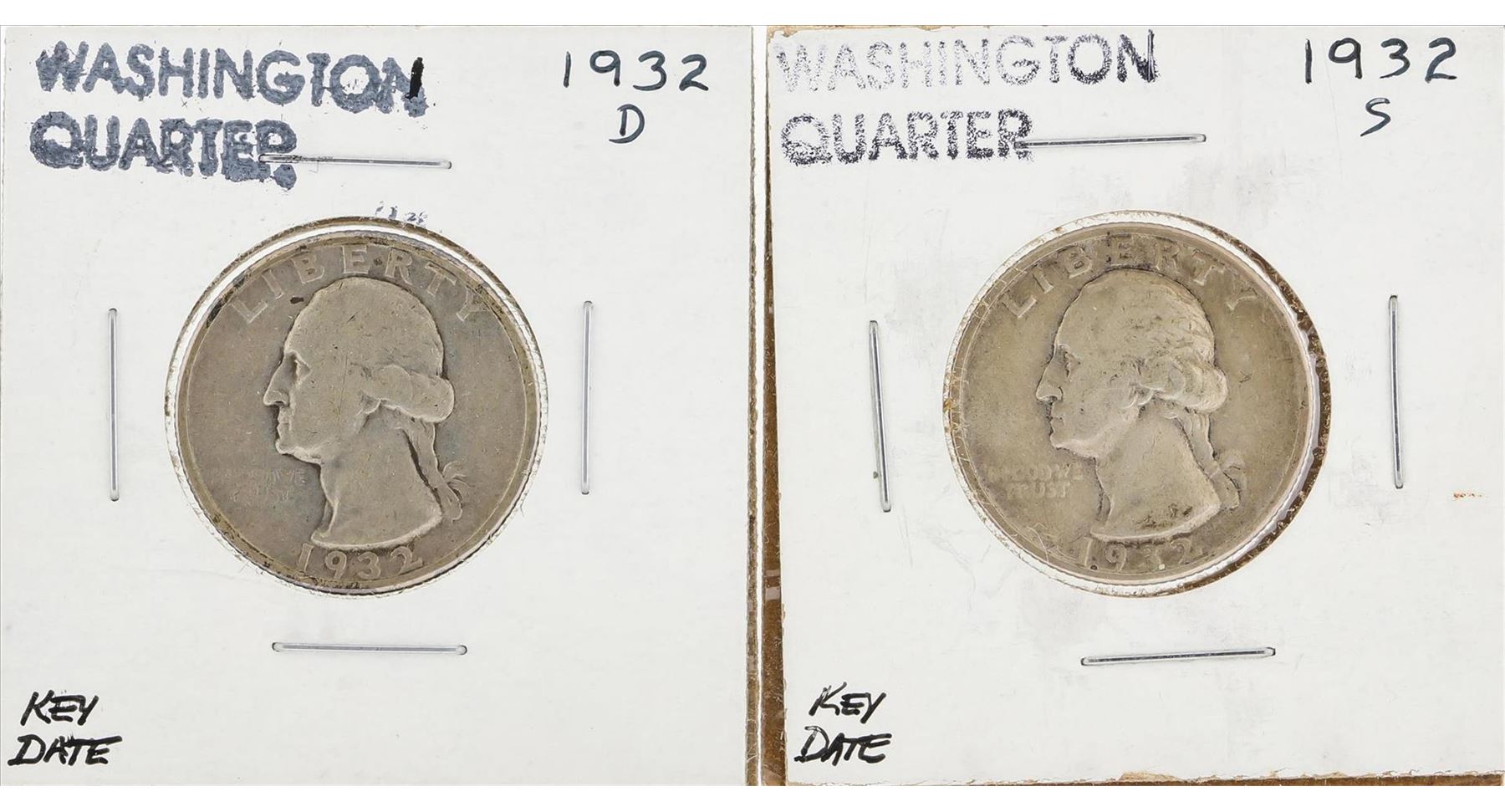 One Lot of (2) 1932-D and 1932-S Washington Quarter Coins.