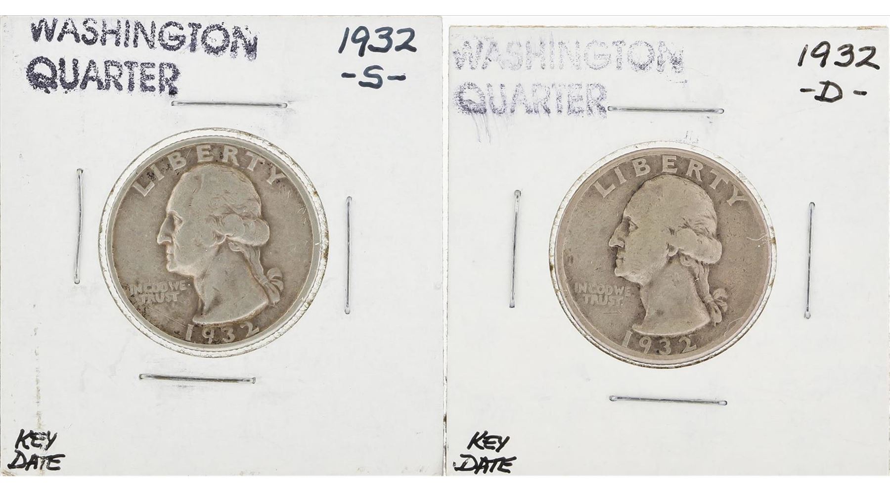 One Lot of (2) 1932-D and 1932-S Washington Quarter Coins.