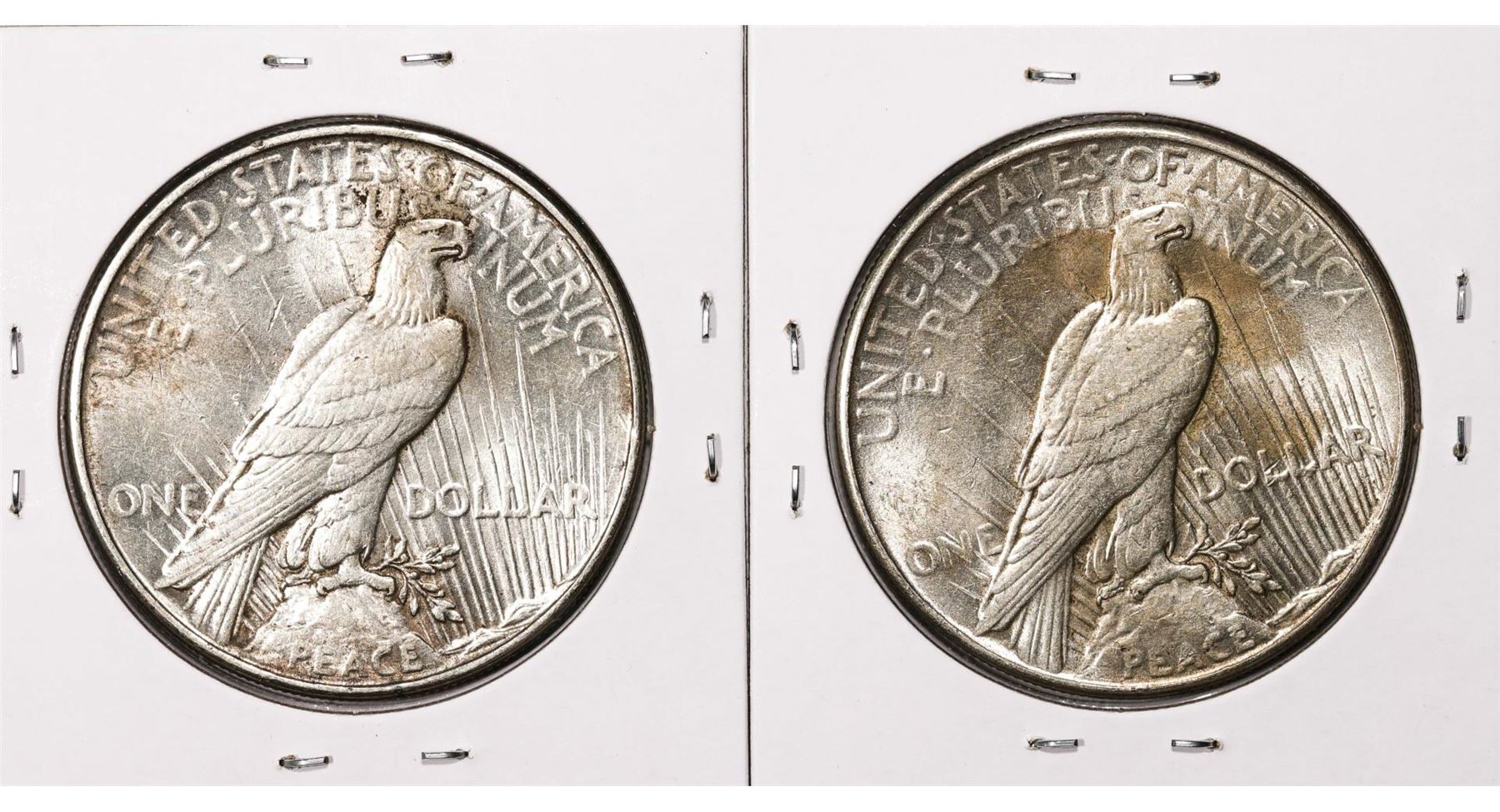 One Lot of (2) 1934-1935 $1 Peace Silver Dollar Coins.