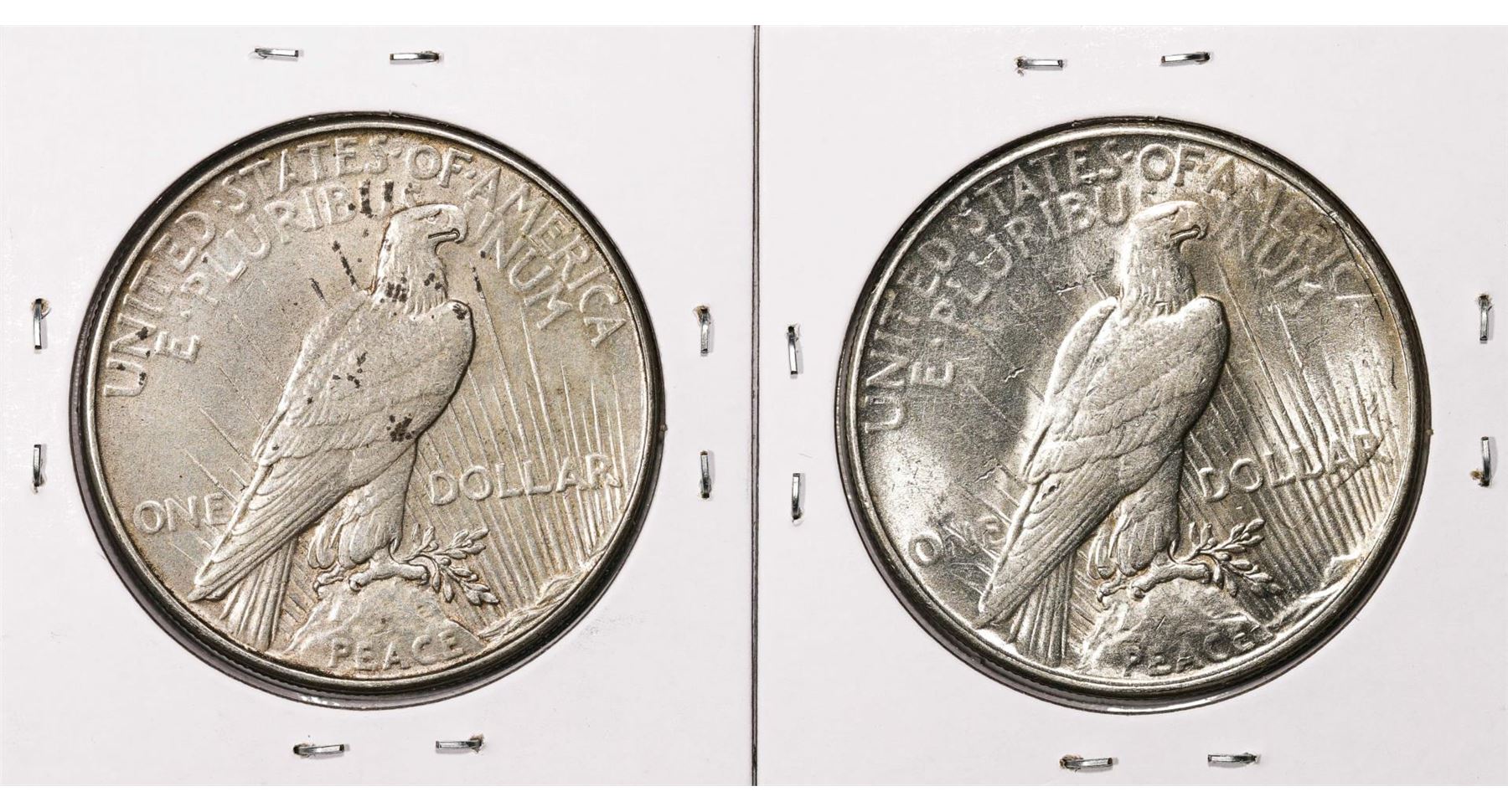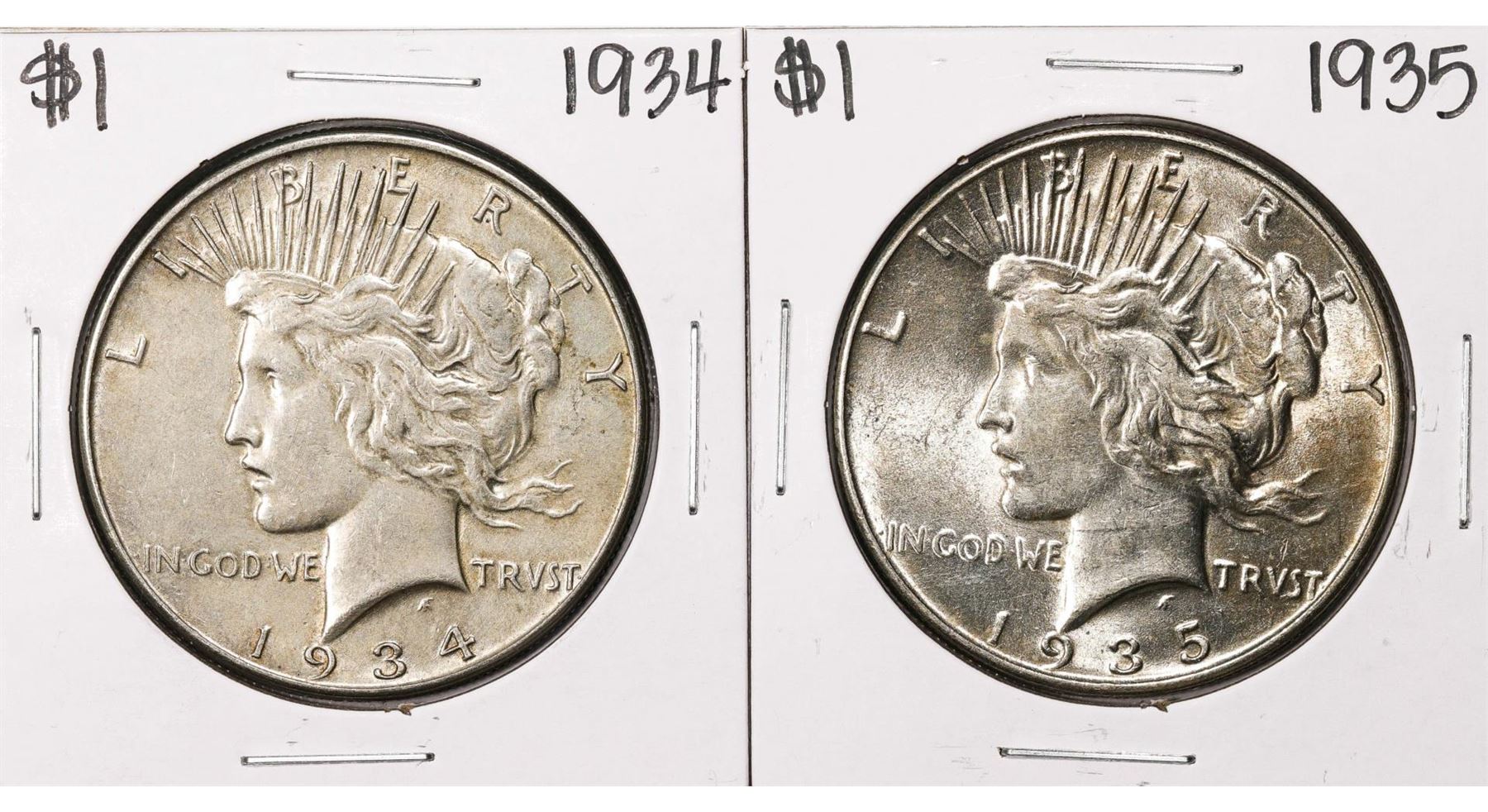 One Lot of (2) 1934-1935 $1 Peace Silver Dollar Coins.