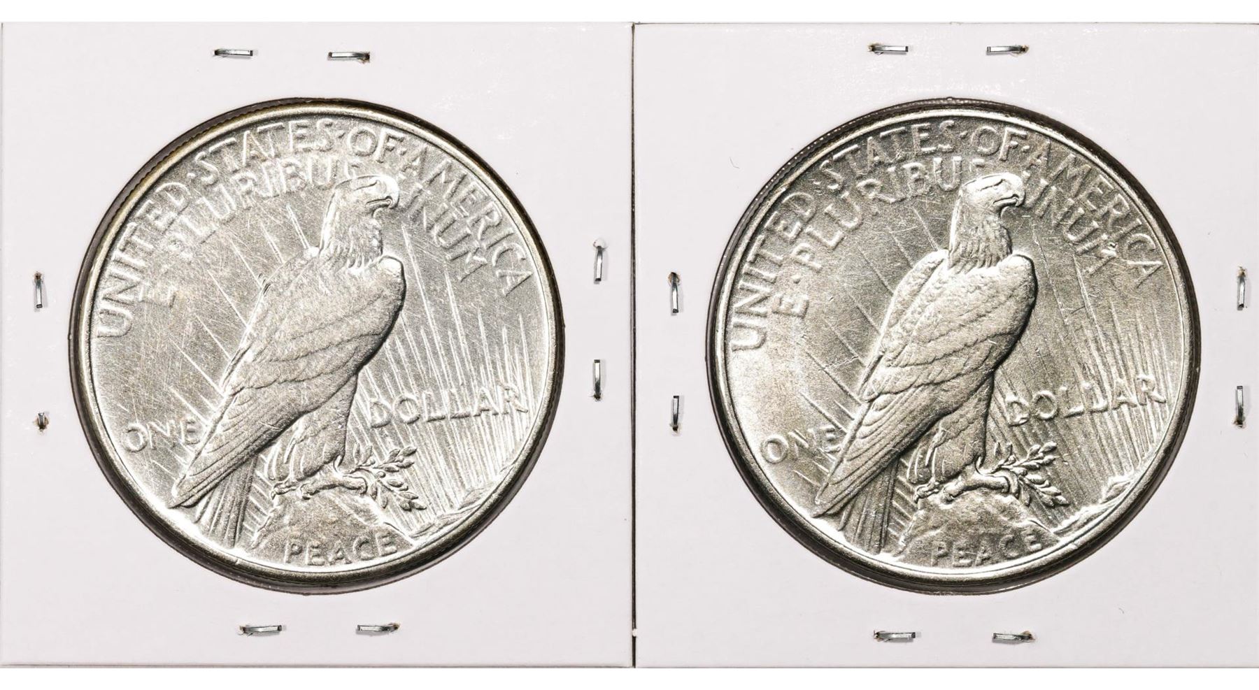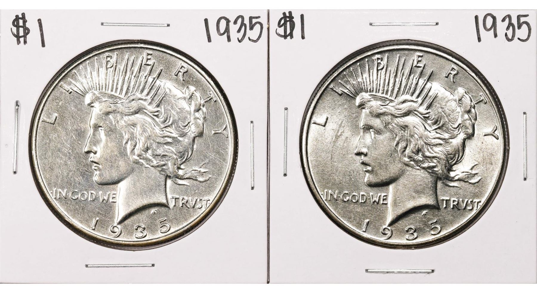 One Lot of (2) 1935 $1 Peace Silver Dollar Coins.