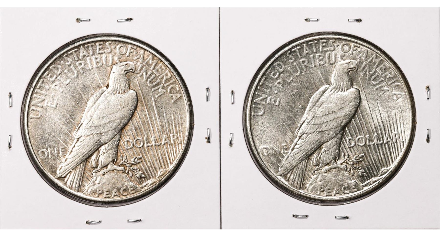 One Lot of (2) 1935 $1 Peace Silver Dollar Coins.