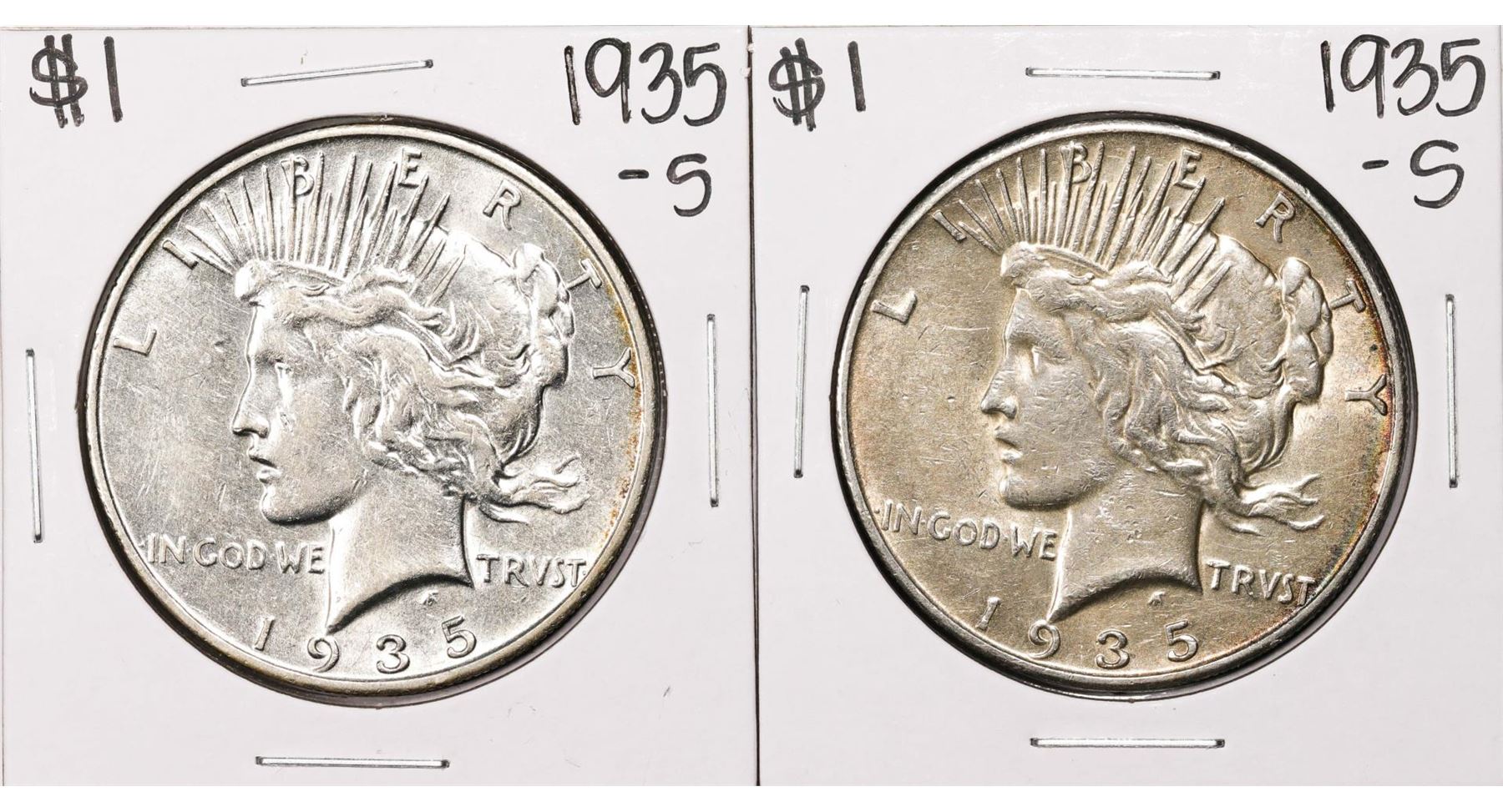 One Lot of (2) 1935-S $1 Peace Silver Dollar Coins.
