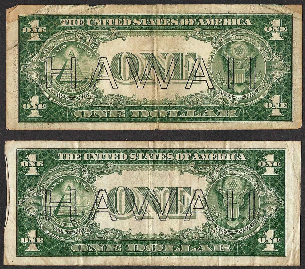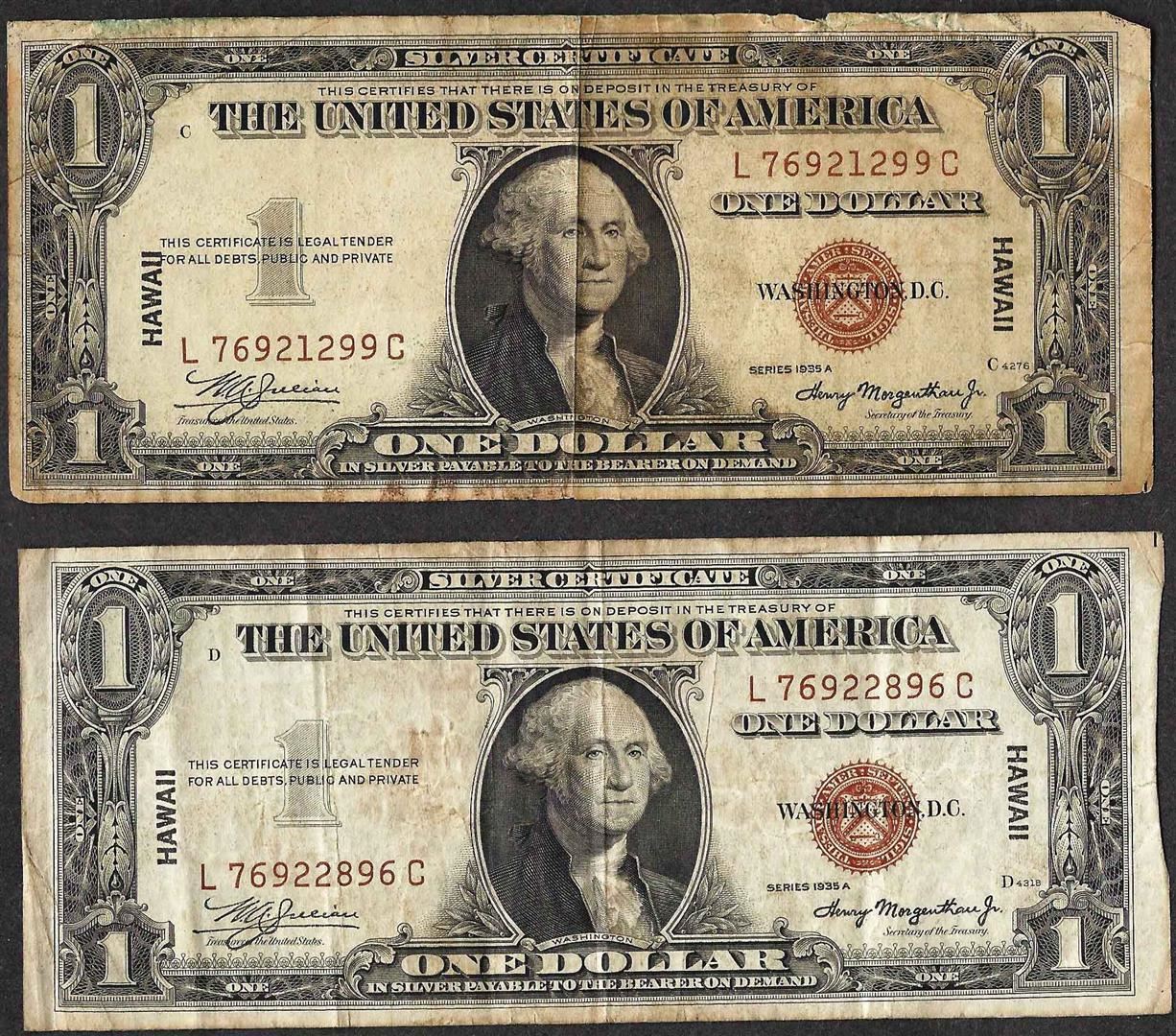 Lot of (2) 1935A $1 Hawaii Silver Certificate WWII Emergency Notes