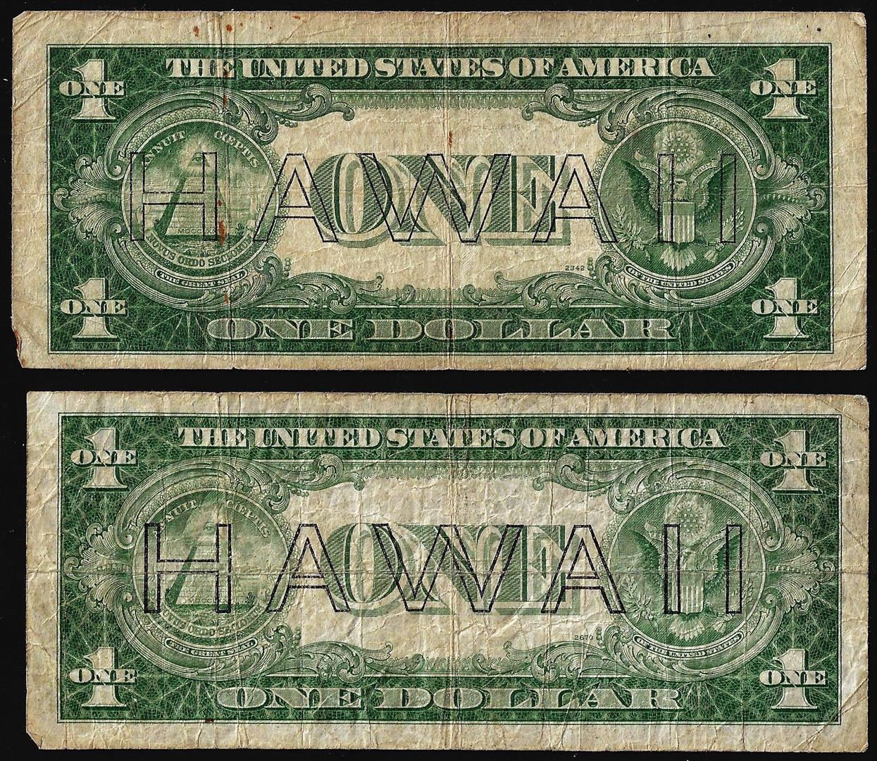 Lot of (2) 1935A $1 Hawaii WWII Emergency Issue Silver Certificate Notes