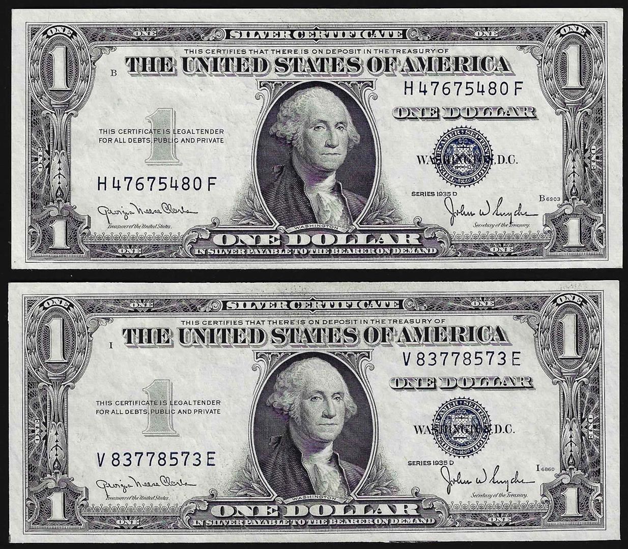 Lot of (2) 1935D $1 Silver Certificate Notes Wide Uncirculated