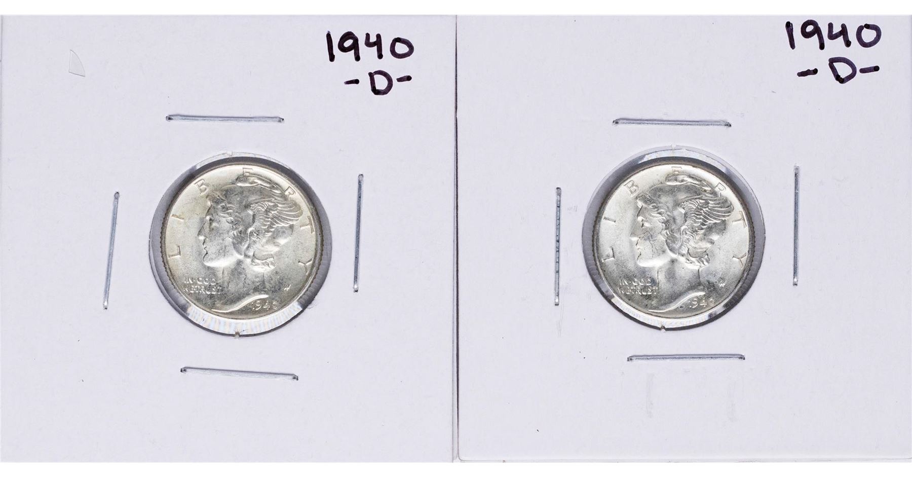 One Lot of (2) 1940-D Mercury Dime Coins.