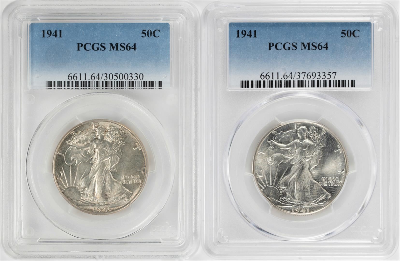 Lot of (2) 1941 Walking Liberty Half Dollar Coins NGC MS64