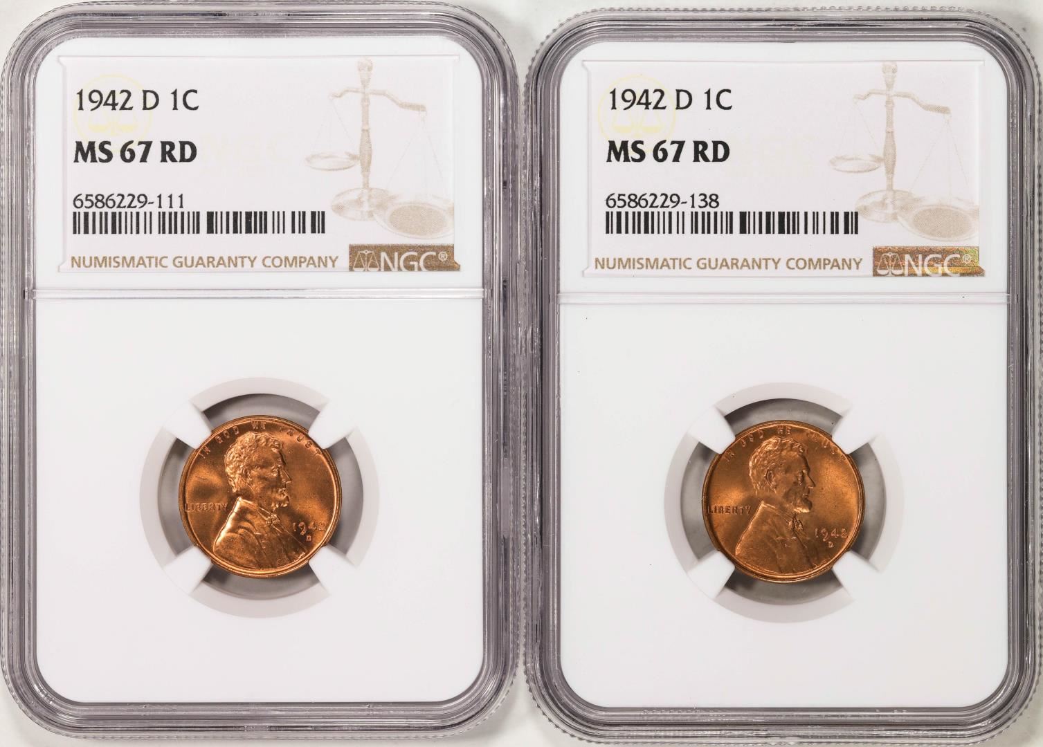 One Lot of (2) 1942-D Lincoln Wheat Cent Coins NGC MS67RD. NGC Certified.