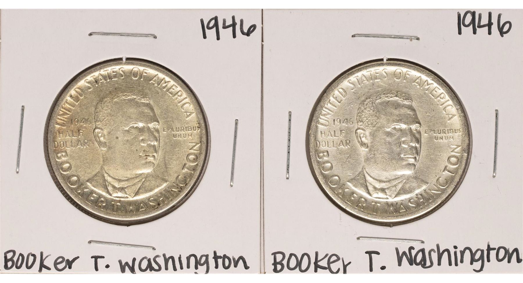 Lot of (2) 1946 Booker T. Washington Commemorative Half Dollar Coins