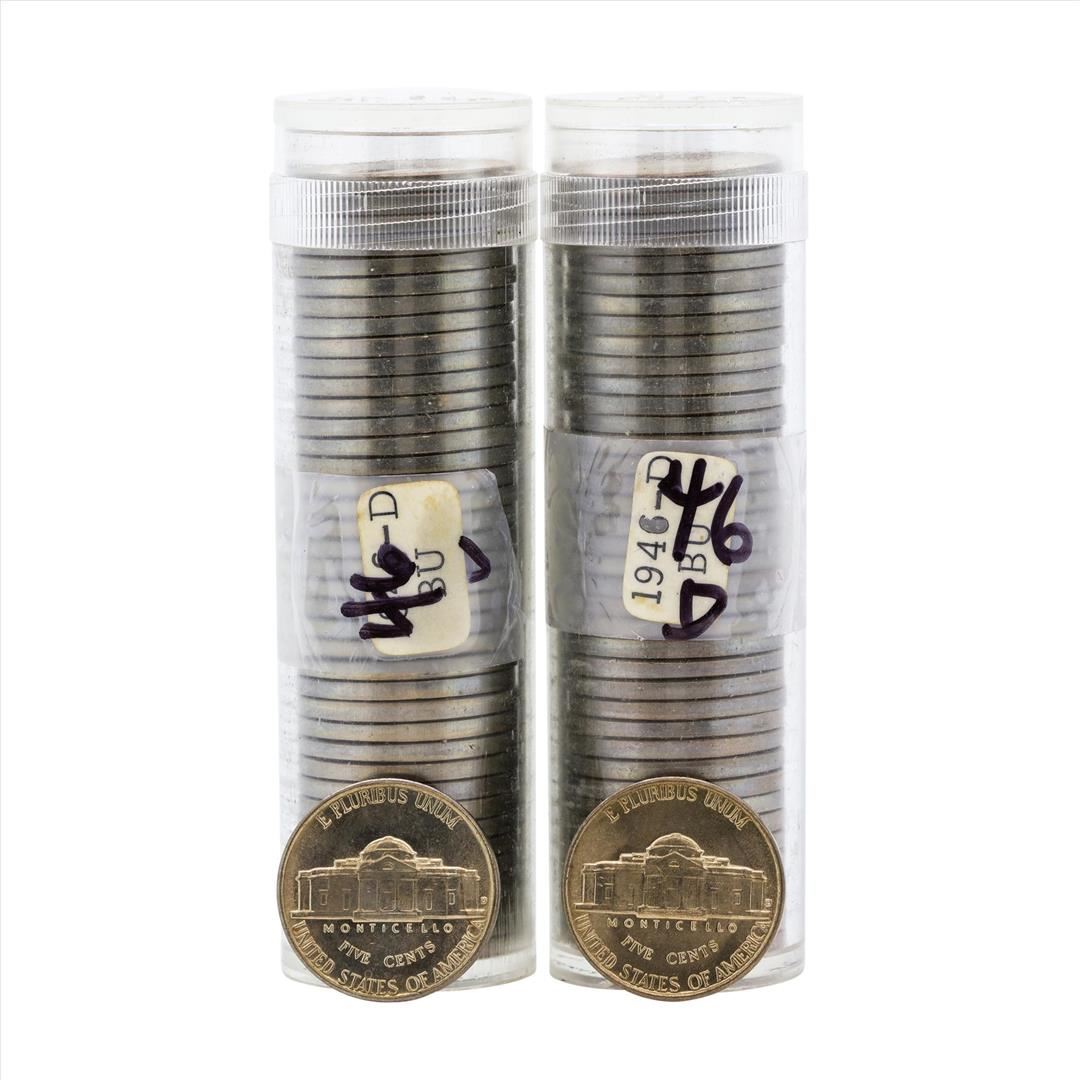 Lot of (2) 1946-D Brilliant Uncirculated Jefferson Nickel Rolls