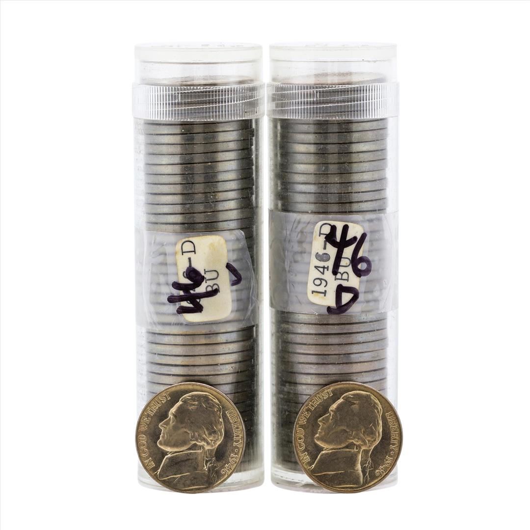 Lot of (2) 1946-D Brilliant Uncirculated Jefferson Nickel Rolls
