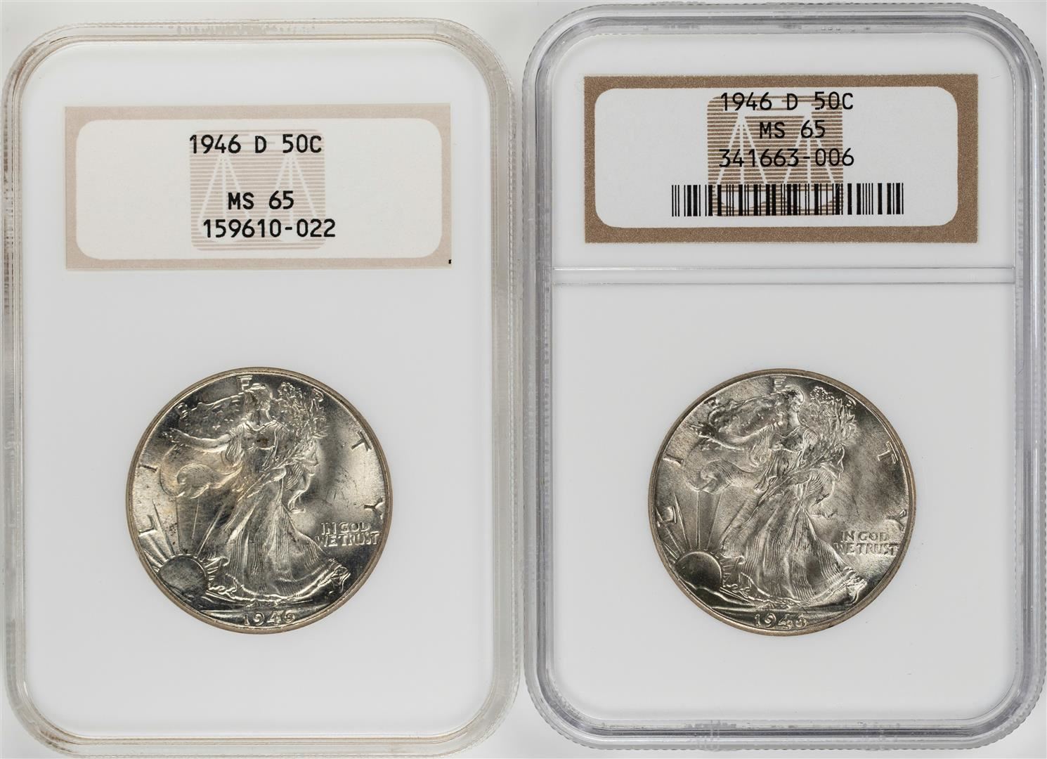 Lot of (2) 1946-D Walking Liberty Half Dollar Coins NGC MS65