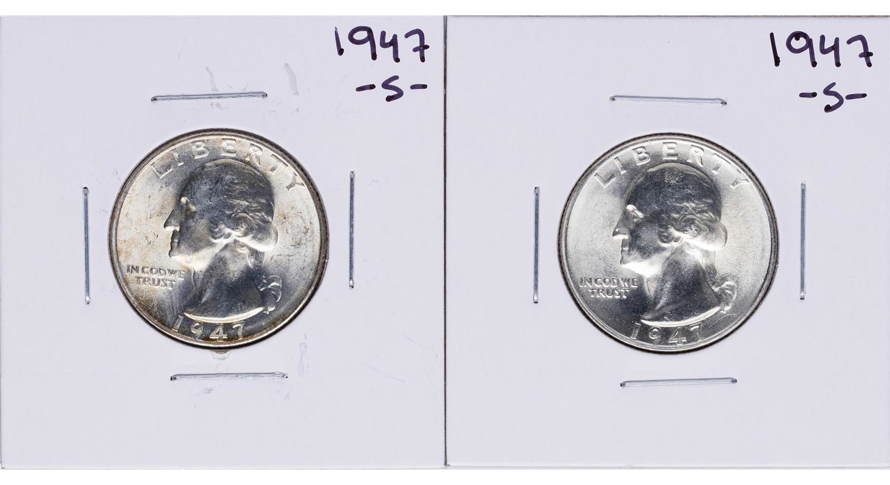 One Lot of (2) 1947-S Washington Quarter Coins.