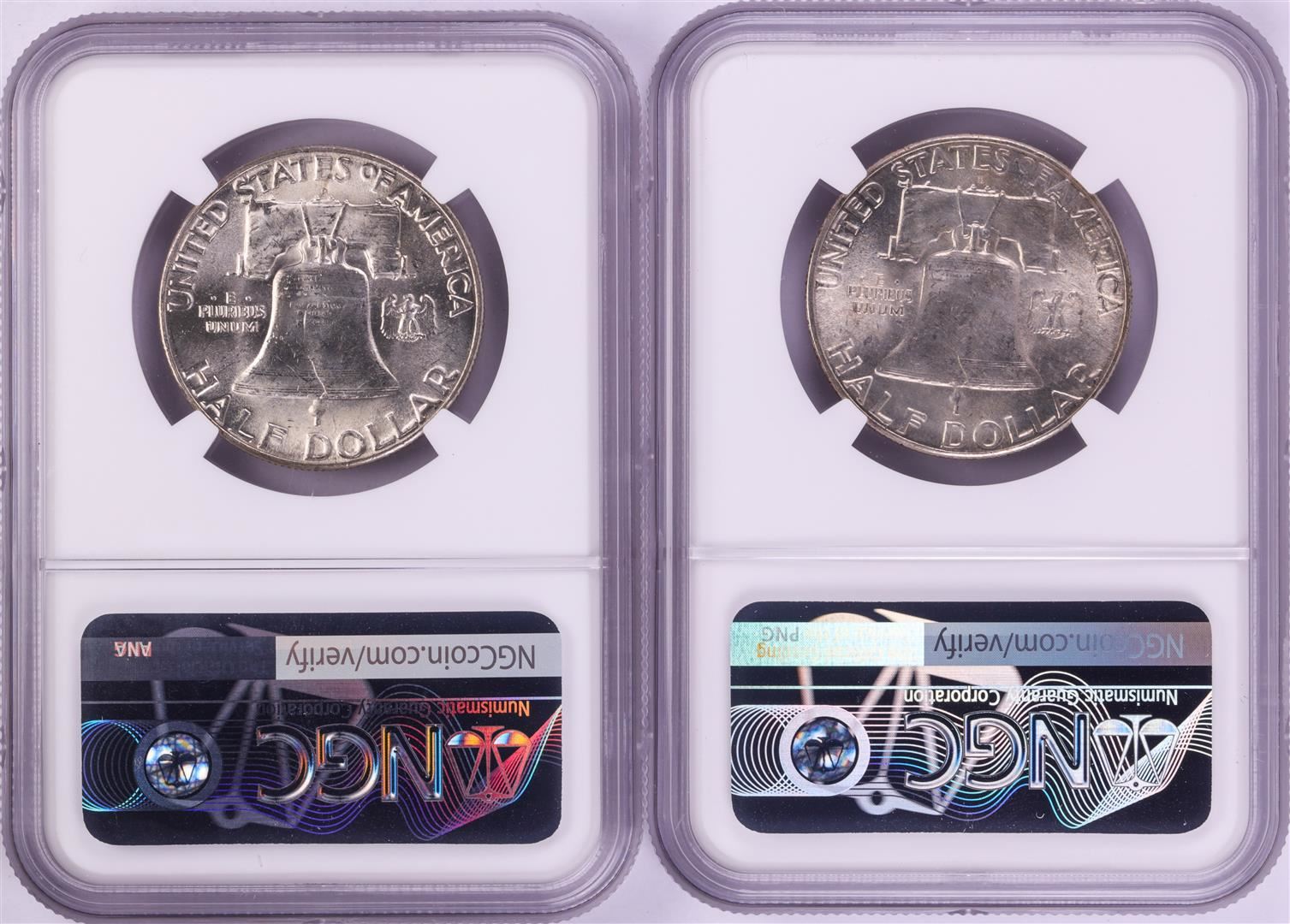 One Lot of (2) 1948-D Franklin Half Dollar Coins NGC MS64. NGC Certified.