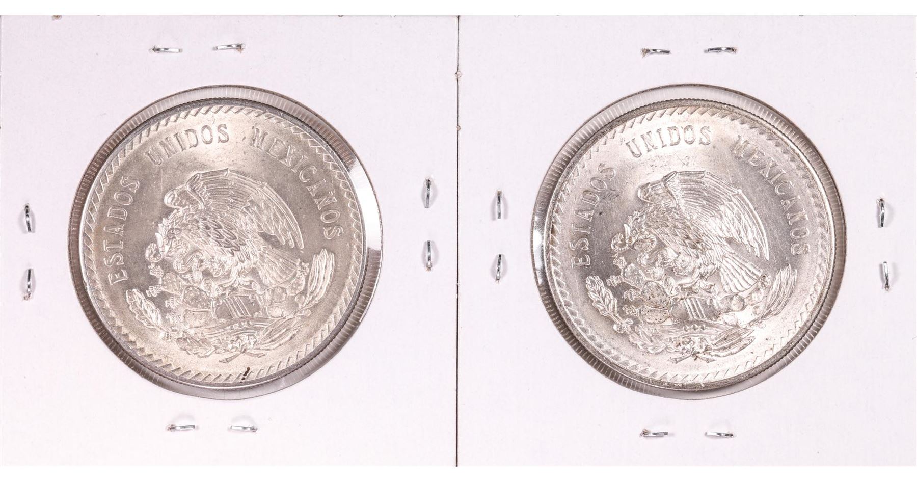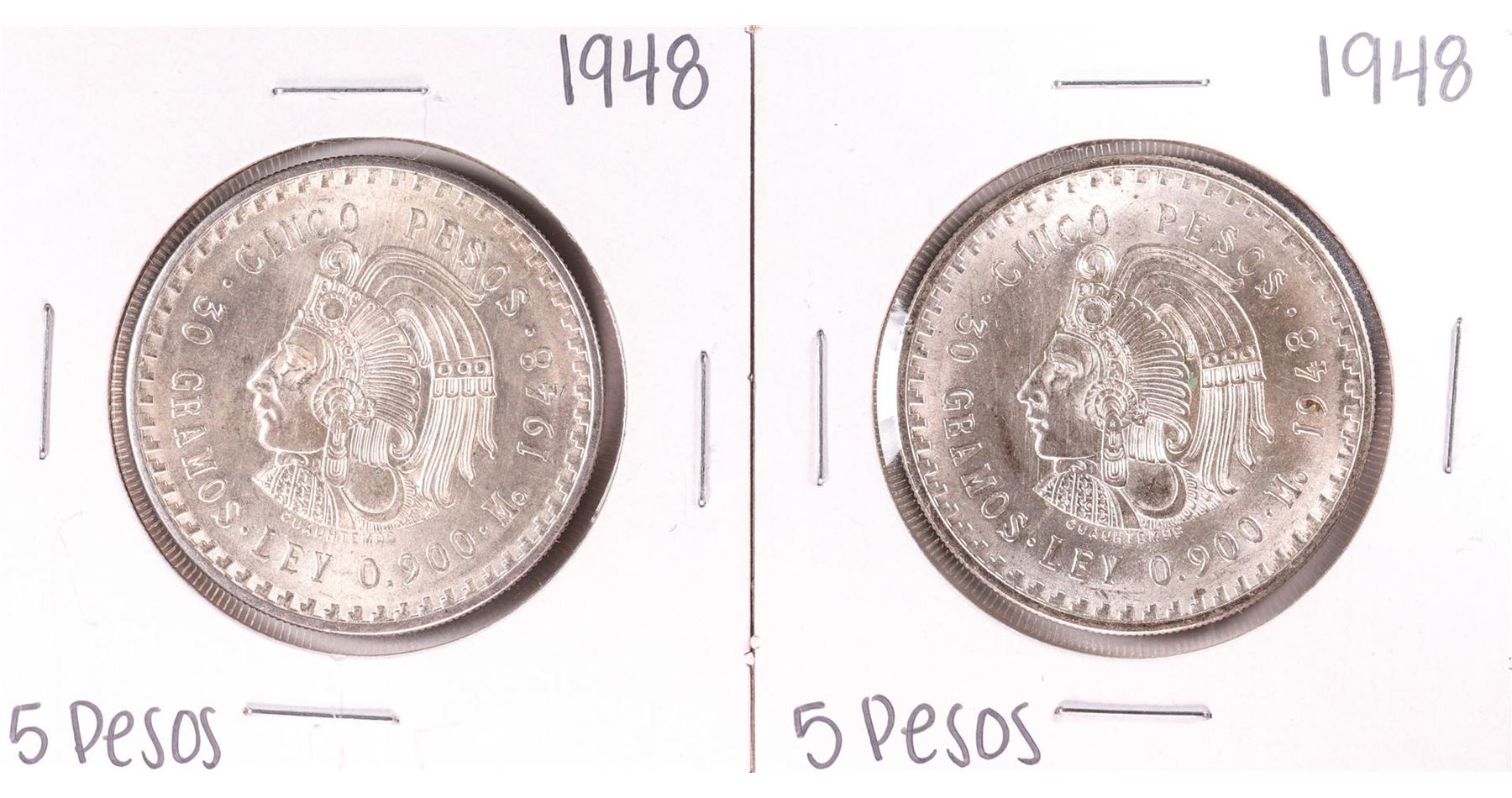Lot of (2) 1948 Mexico Cuauhtemoc Cinco Pesos Silver Coins