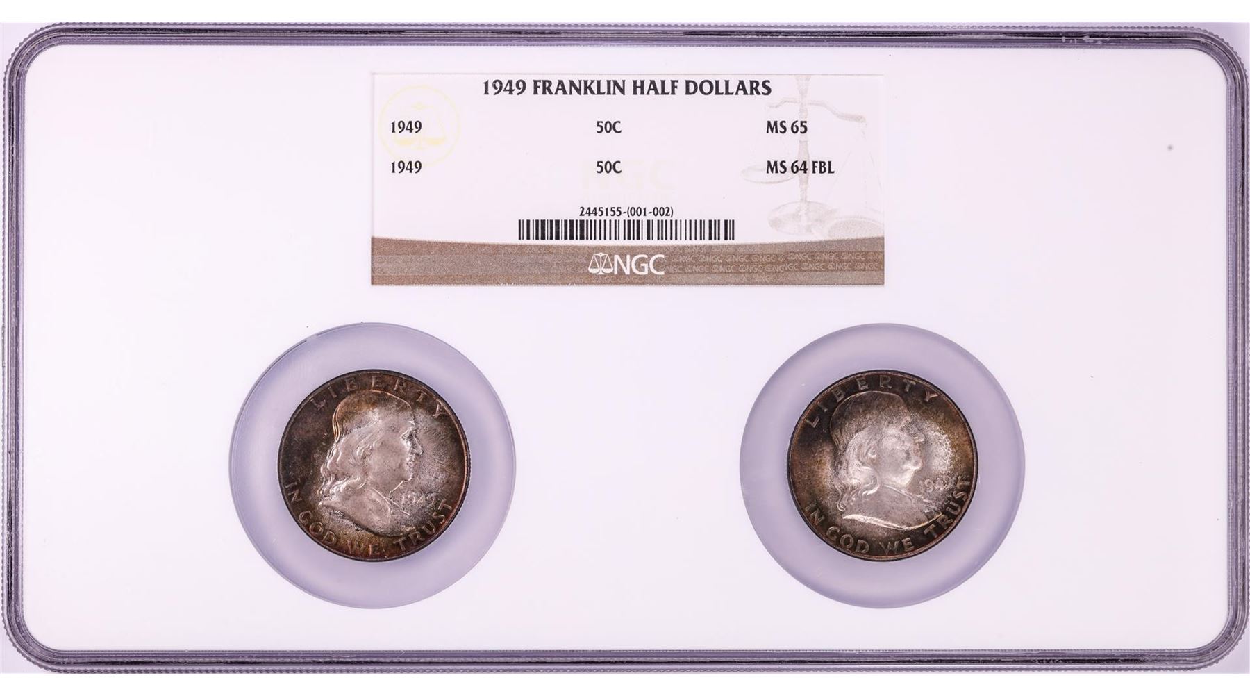 Lot of (2) 1949 Franklin Half Dollar Coins NGC MS64FBL/MS65