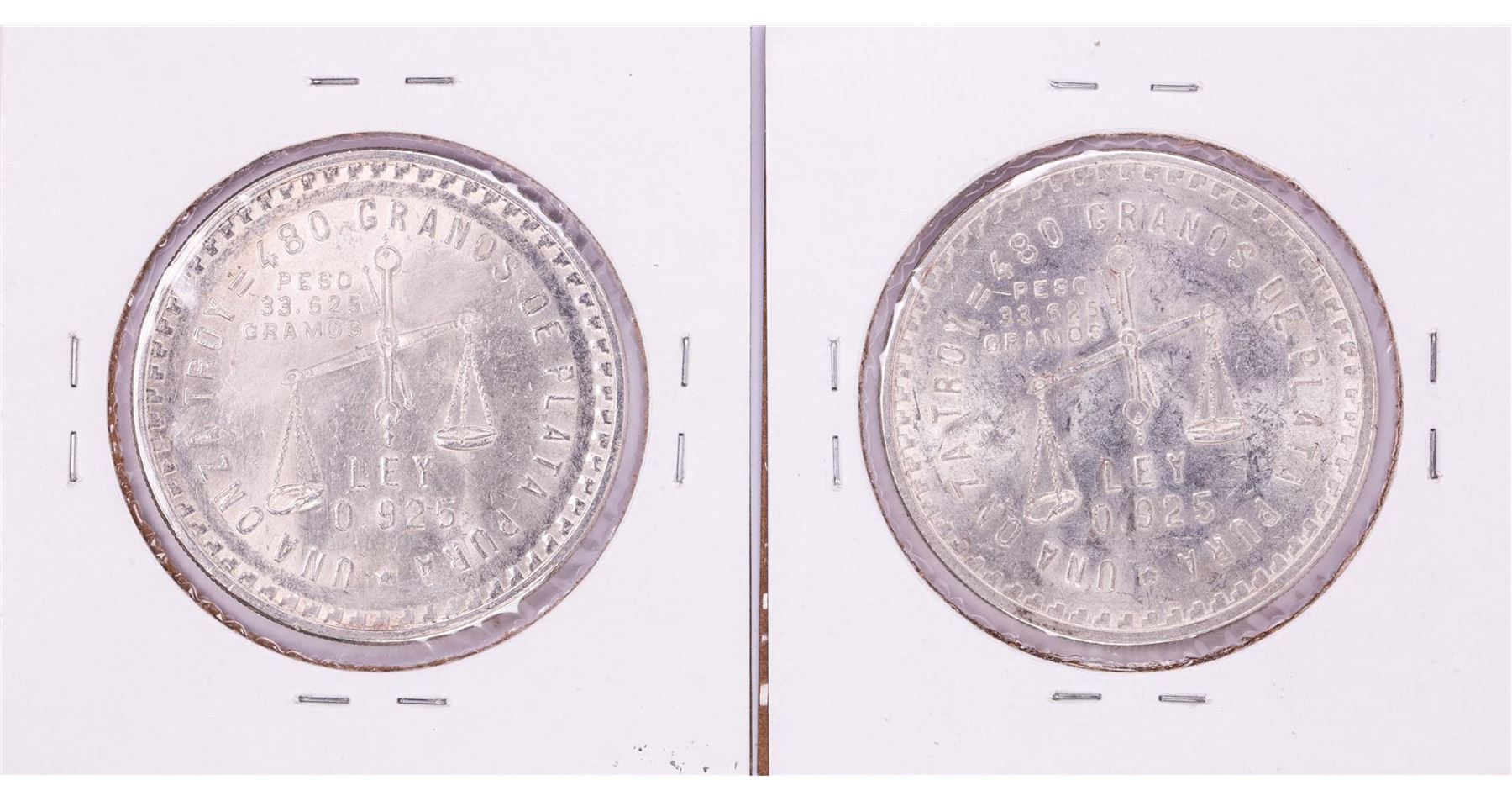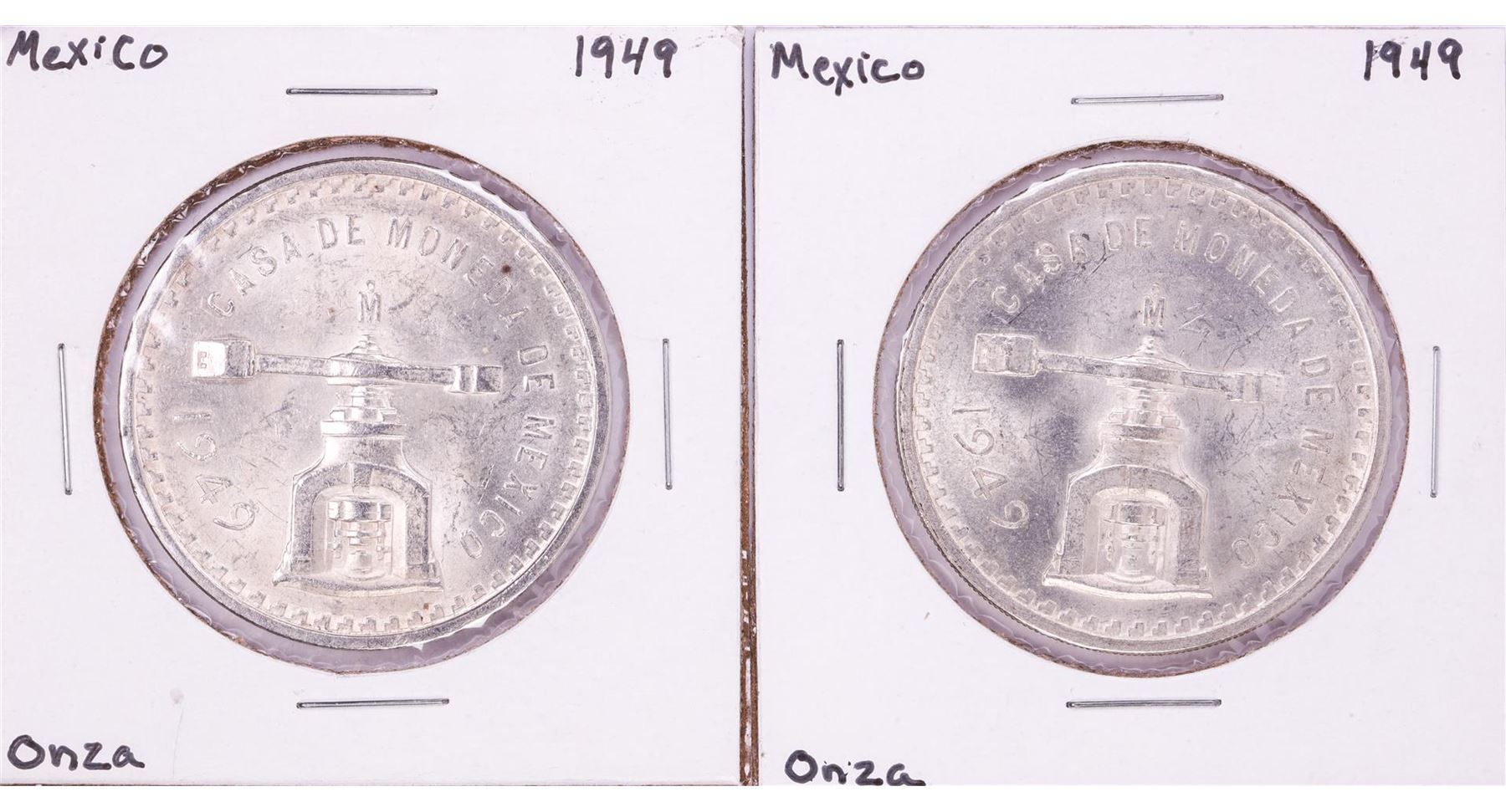 One Lot of (2) 1949 Mexico Una Onza Silver Coins.