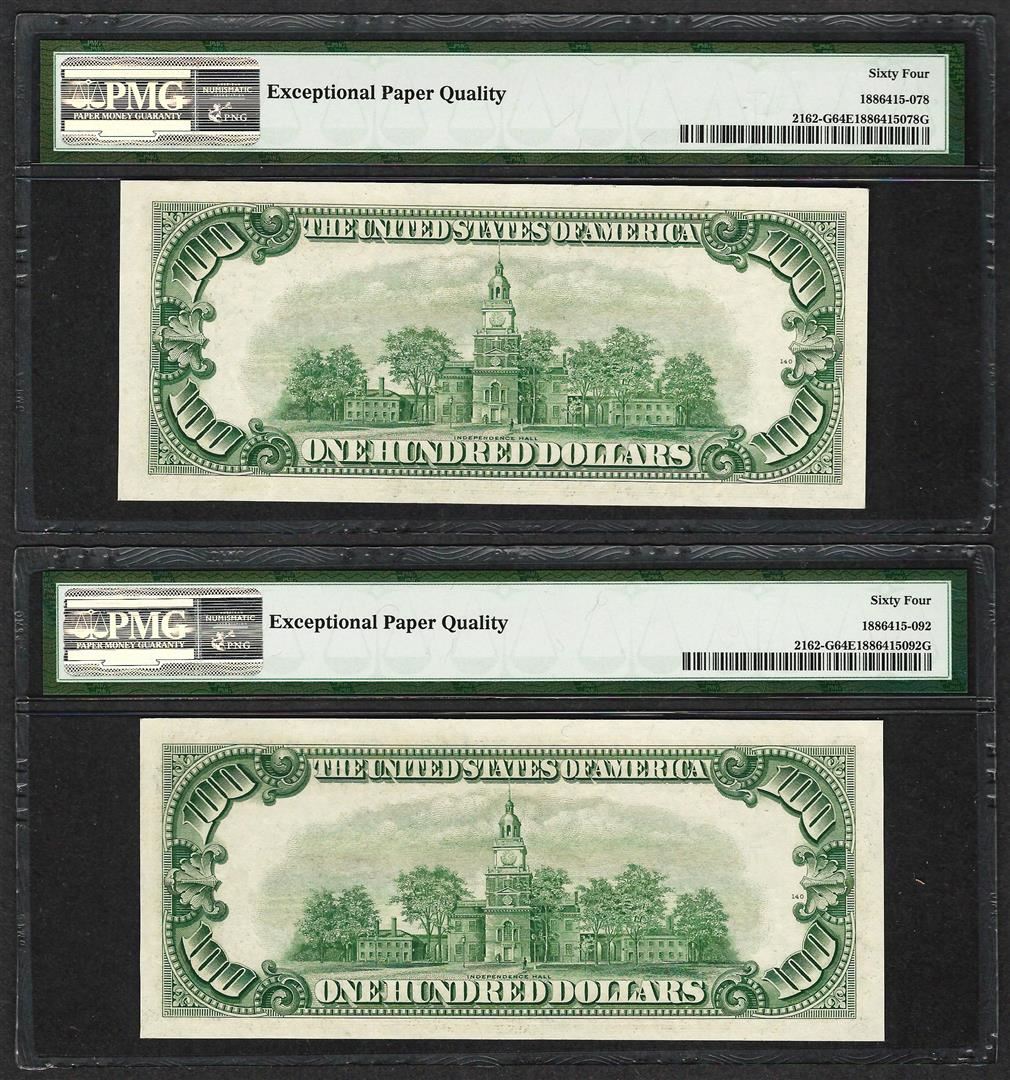 Lot of (2) 1950E $100 Federal Reserve Notes Chicago PMG Choice Uncirculated 64EPQ