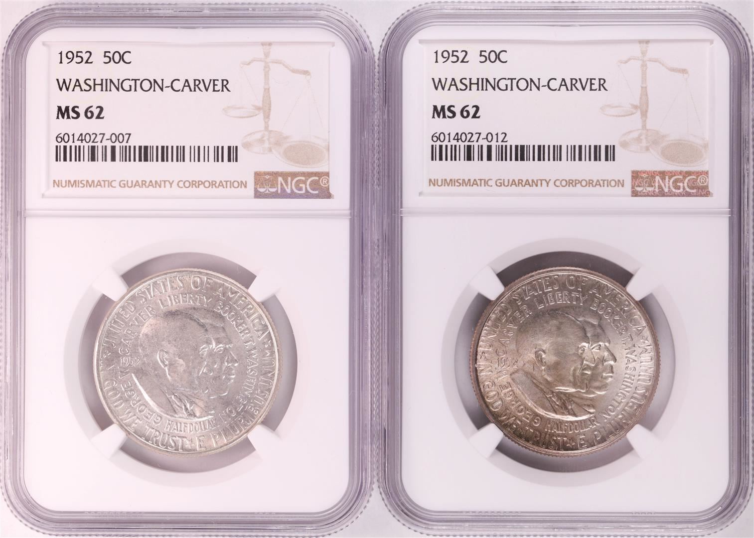 Lot of (2) 1952 Washington-Carver Commemorative Half Dollar Coins NGC MS62